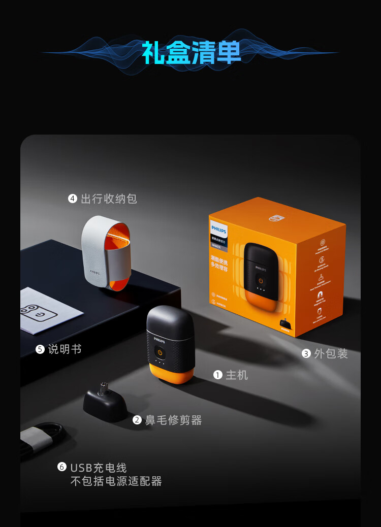 飞利浦(PHILIPS)剃须刀电动鹅卵石便携式刮胡刀 S891/05 TZ