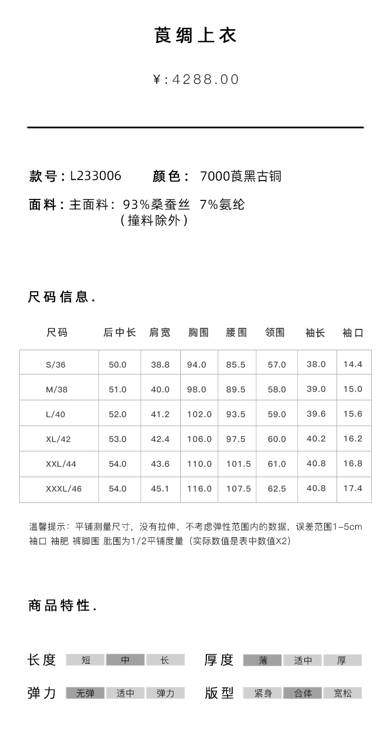 TANGY Collection天意高端2023商场同款女士莨绸衬衣