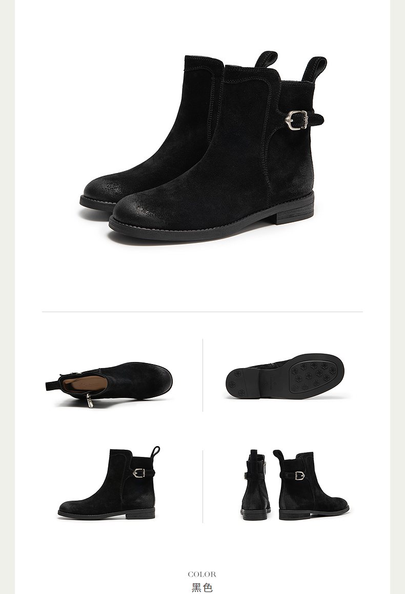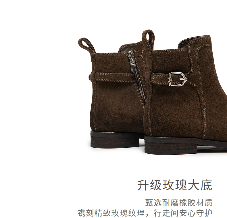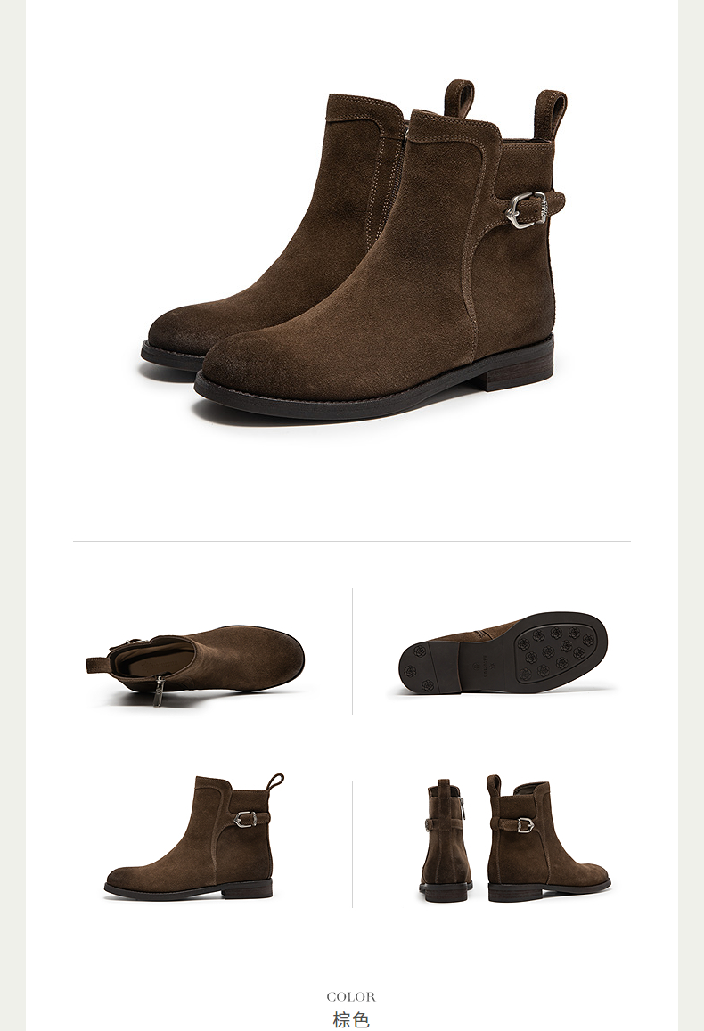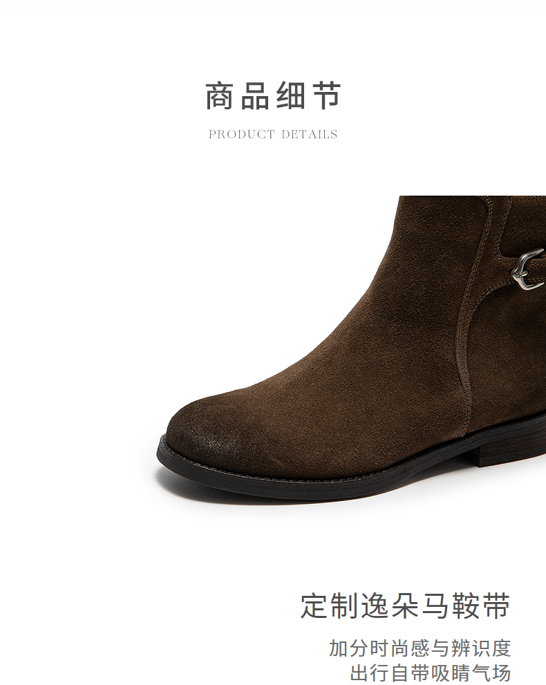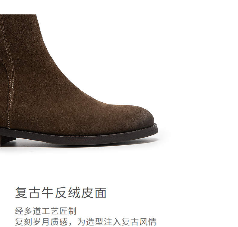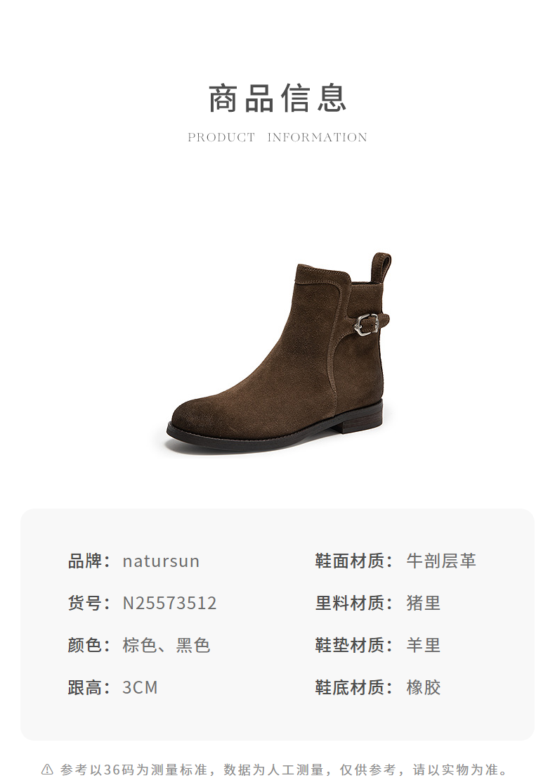 natursun复古弹力靴女棕色短筒靴显瘦百搭瘦瘦靴袜靴N25573512