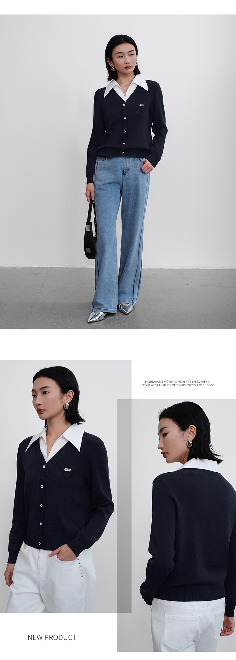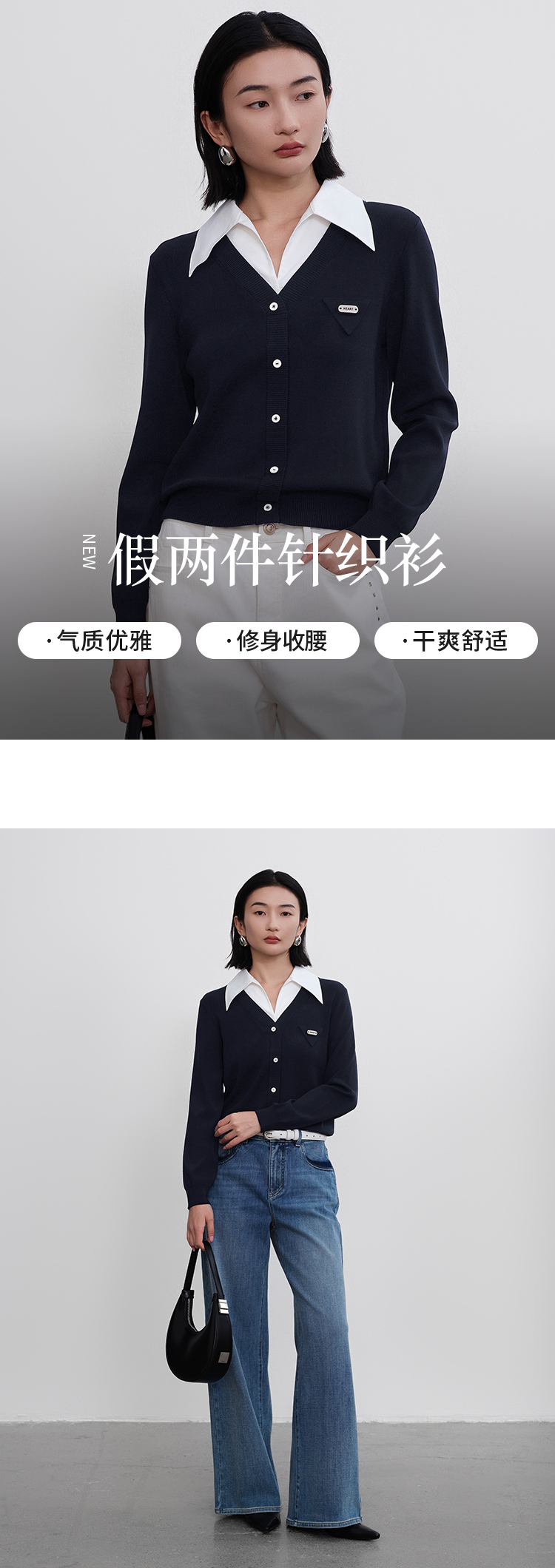 【商场同款】CNQ5354 “精英针织” 深邃、高智的藏蓝色假两件毛衫 好穿显瘦