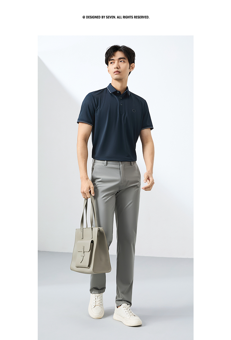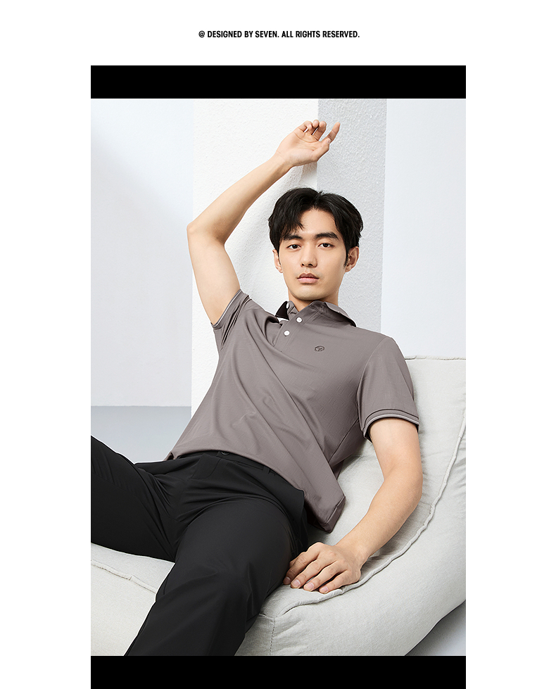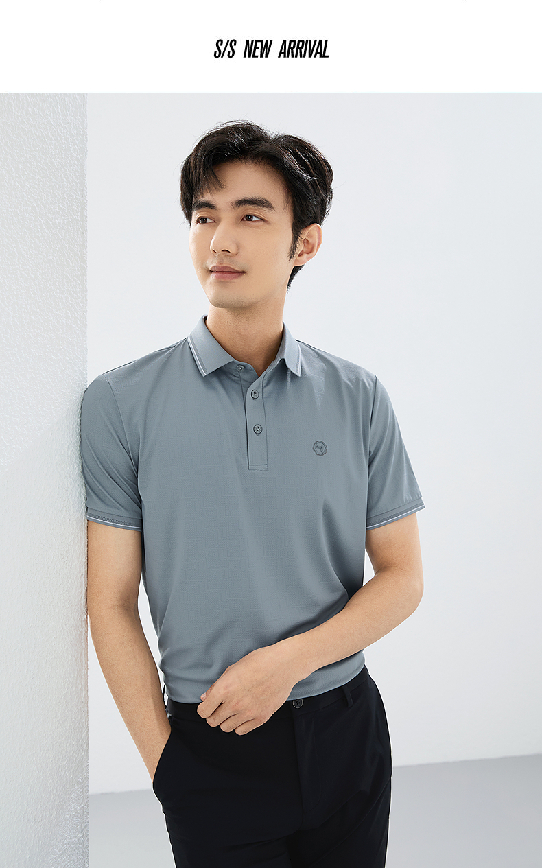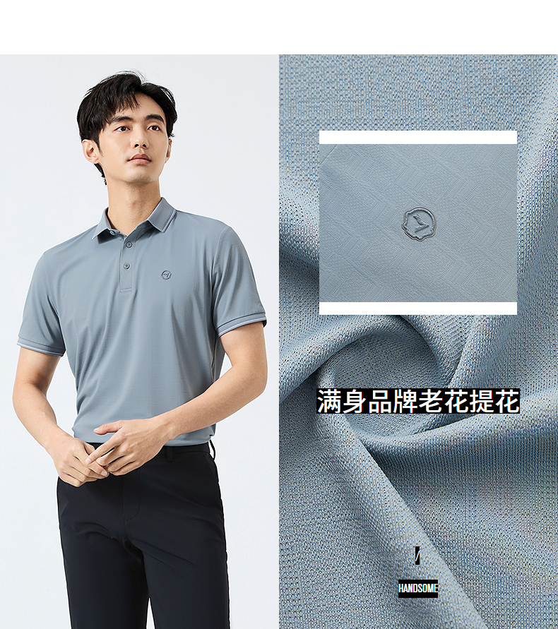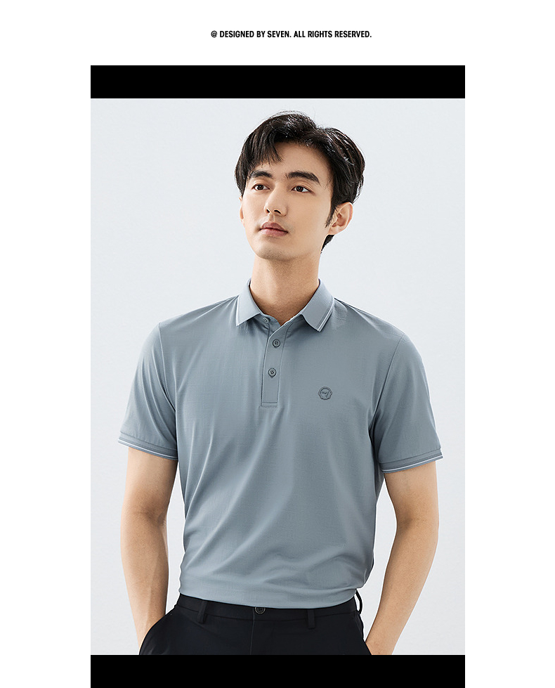 【不变形领】柒牌短袖POLO衫男2025夏季新款满身提花爸爸翻领T恤128T72620