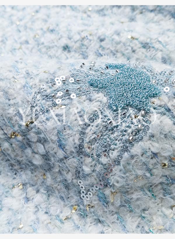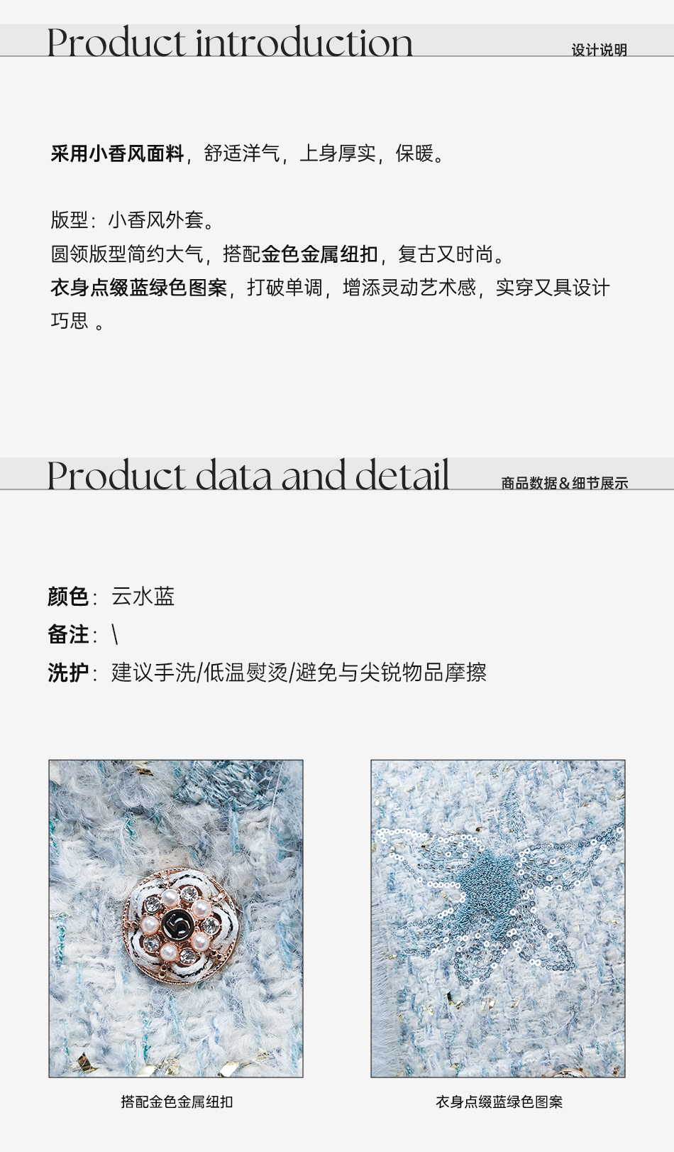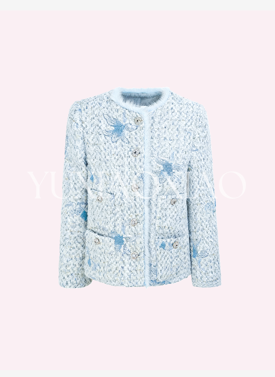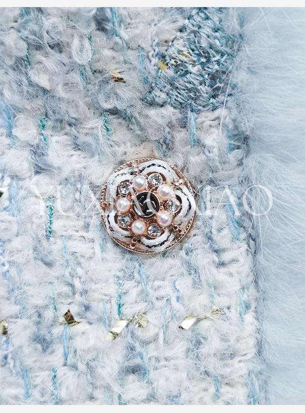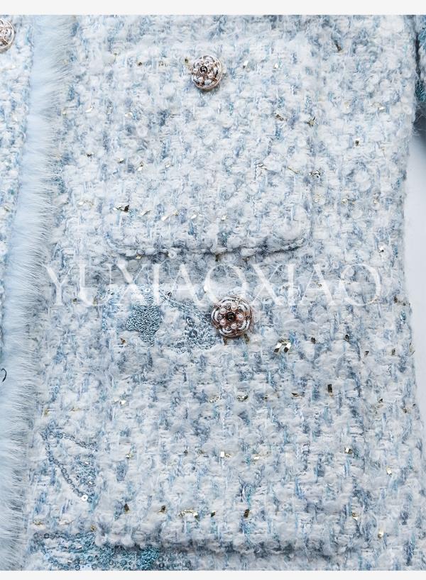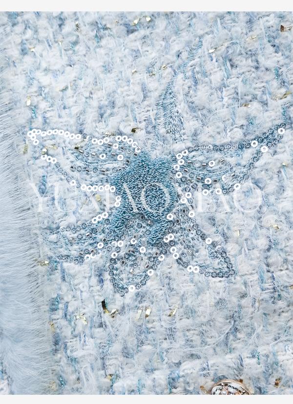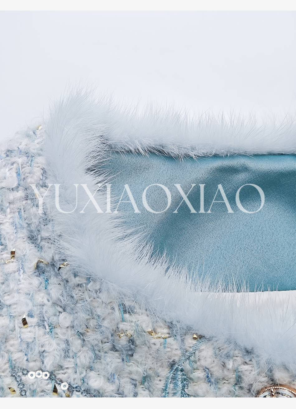 余潇潇【水色千金】羊毛混纺拼接水貂毛条90白鸭绒小香风羽绒外套