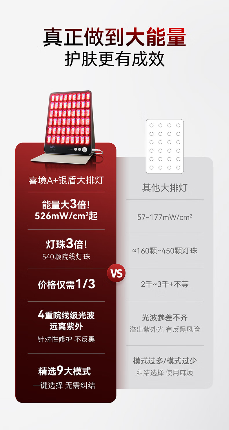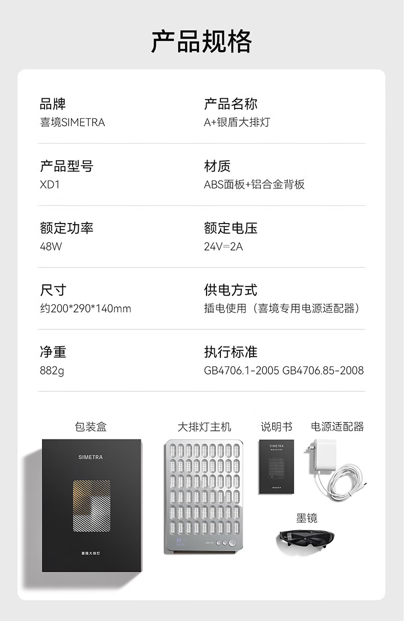 SIMETRA喜境A+银盾大排灯家用美白红蓝光脸部全身嫩肤LED美容仪