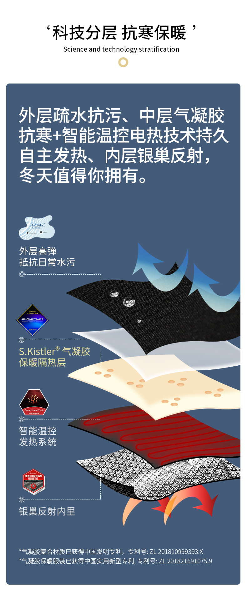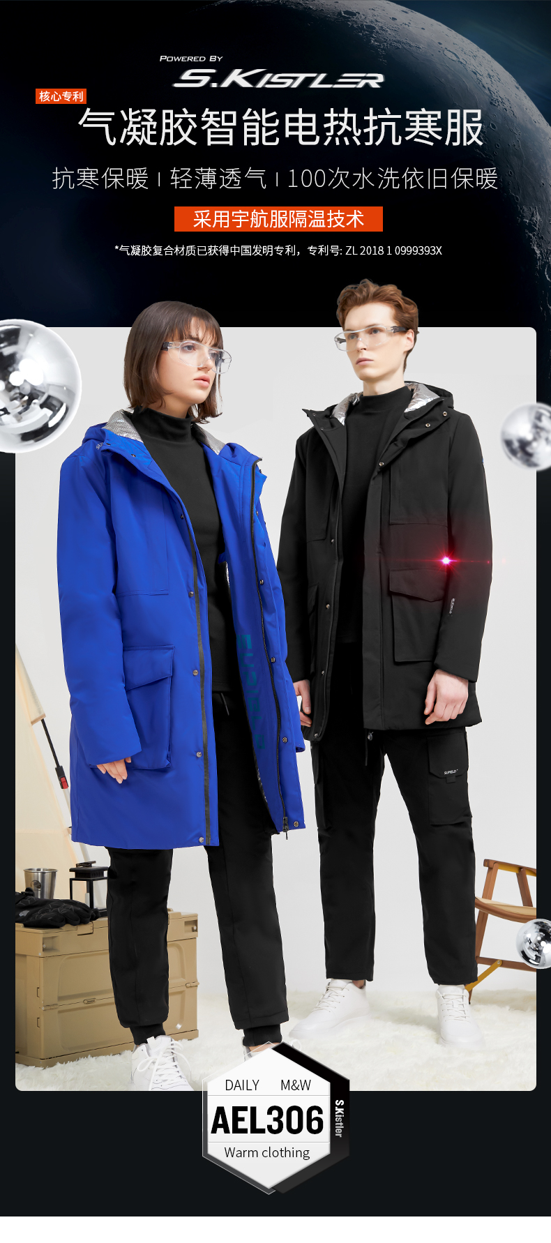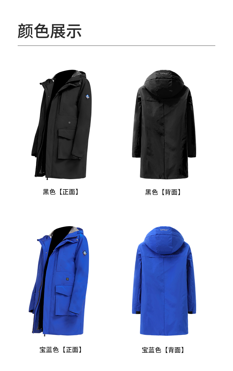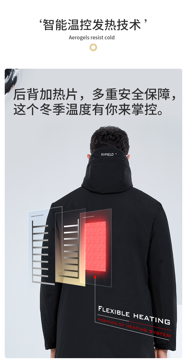 Supield素湃黑科技宇航气凝胶智能加热中长款连帽气凝胶外套冬季