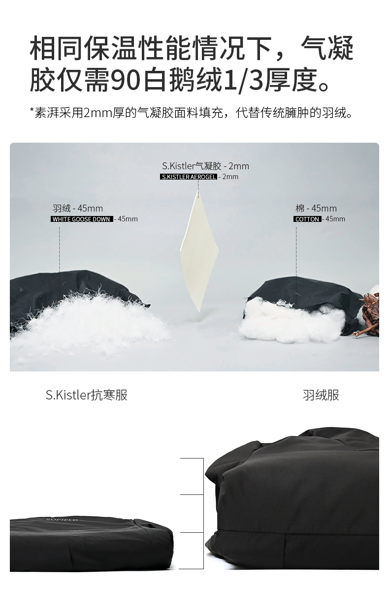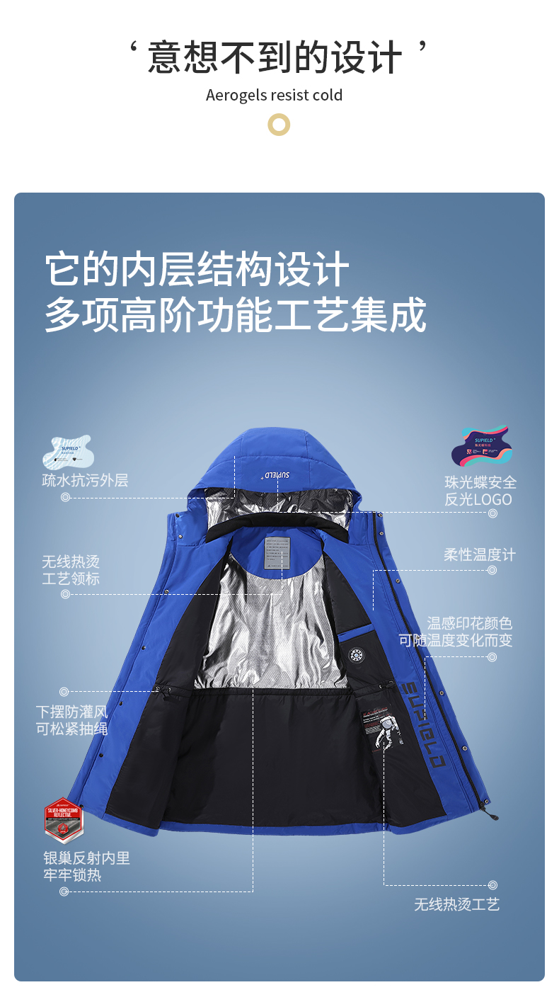 Supield素湃黑科技宇航气凝胶保暖衣连帽棉衣情侣款抗寒棉服503