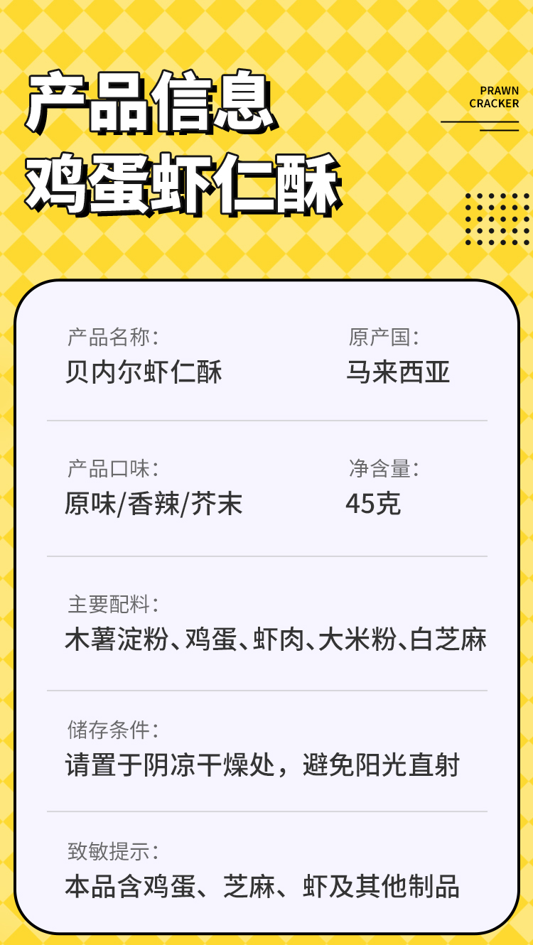 贝内尔鸡蛋虾仁酥芥末味/原味45g 鲜香酥脆原味较清淡芥末味带一丝辛辣 058279/058278
