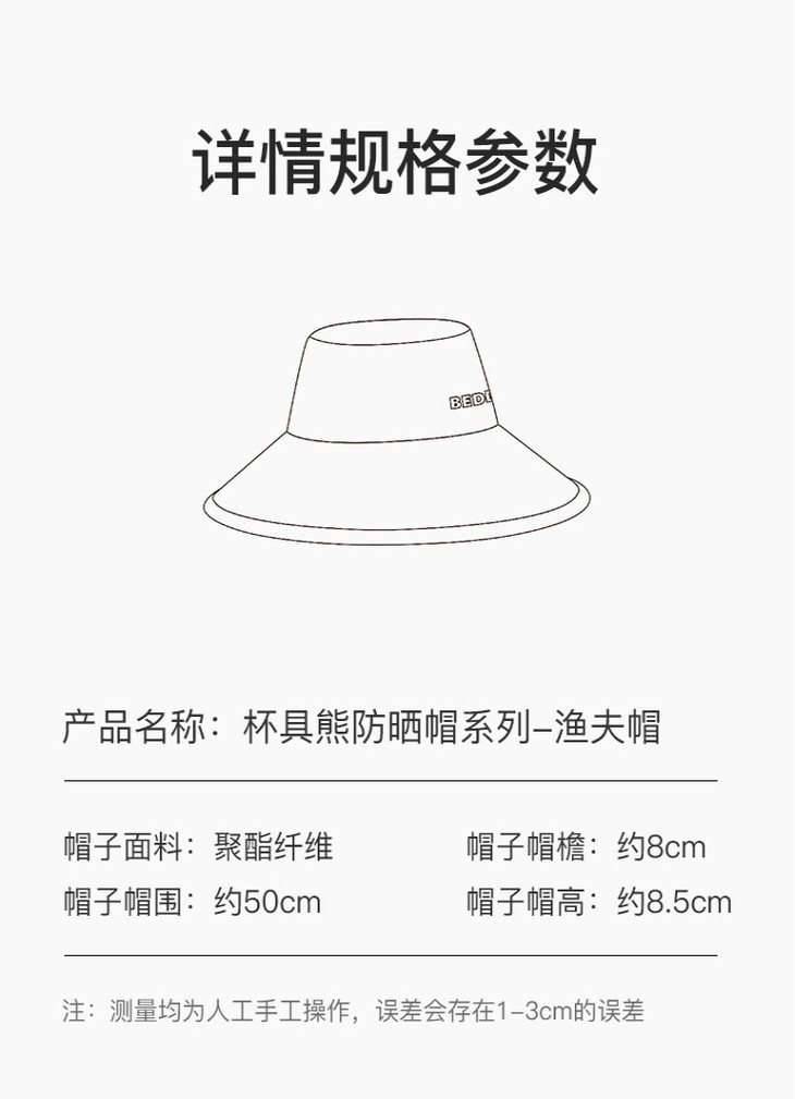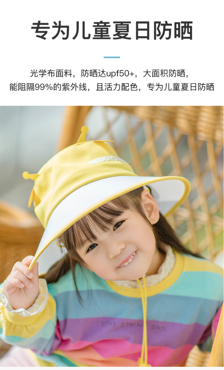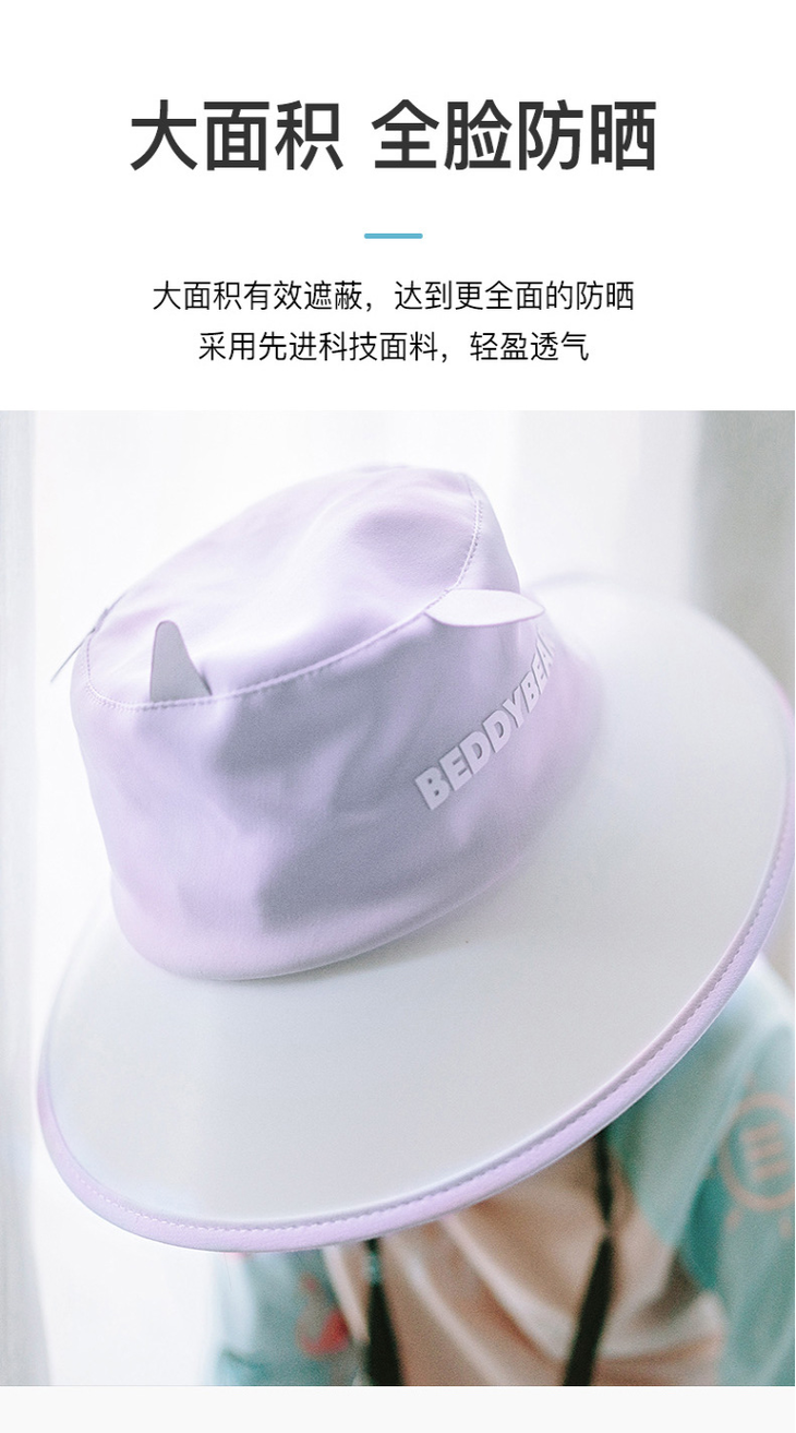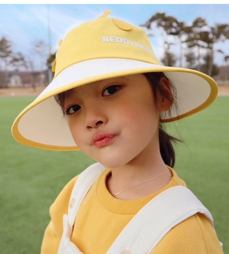 杯具熊萌宠防晒帽儿童大檐 户外百搭防紫外线遮阳渔夫帽子