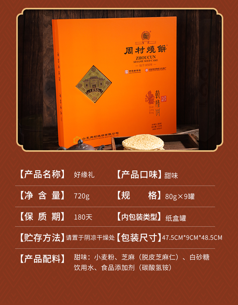周村烧饼山东特产好缘礼80g*9盒甜味中华老字号芝麻饼纯手工
