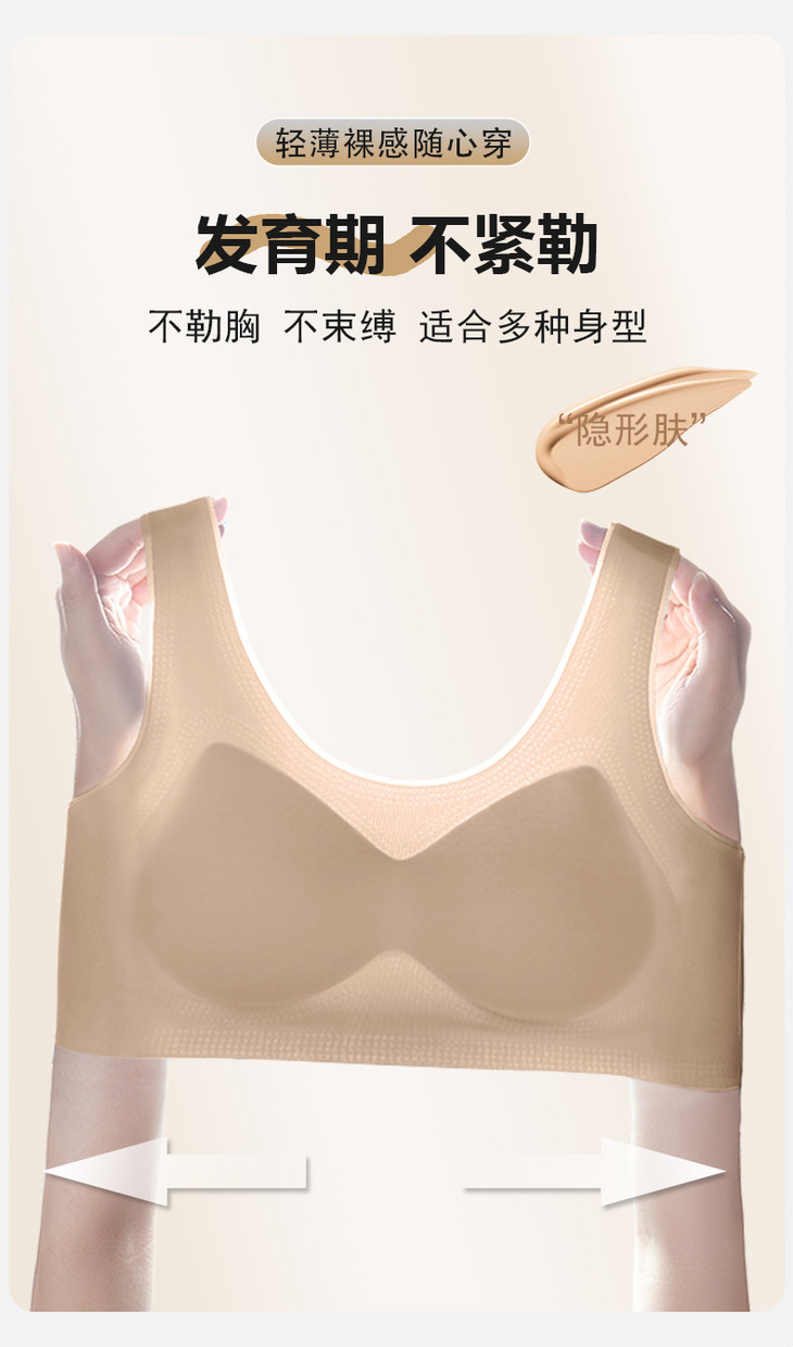 少女成长期专属的必买理由,每一处都是心机呵护 ✅ A类婴幼儿级安全认证 ✅ 冰丝面料王者组合,柔滑凉感 ✅ 激光裁剪+点胶贴合,无痕工艺天花板,隐形救星! ✅ 科学分区承压设计,跑步跳绳不晃不坠 ✅ 加宽防滑肩带,怎么动都不掉 ✅ 3D立体超薄透气垫,防凸点不尴尬 上学、运动、逛街、睡觉...一件搞定,发育期少女专属👙呵护!