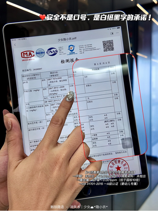 🎬1⃣️A类婴幼儿级安全认证 面料通过国家GB18401-2010 A类标准(检测报告可查:) ✅甲醛未检出,pH值5.5弱酸性,敏感肌、痘痘肌少女放心穿!