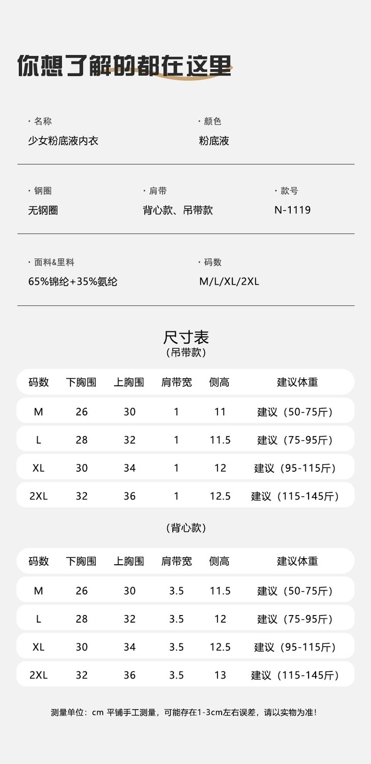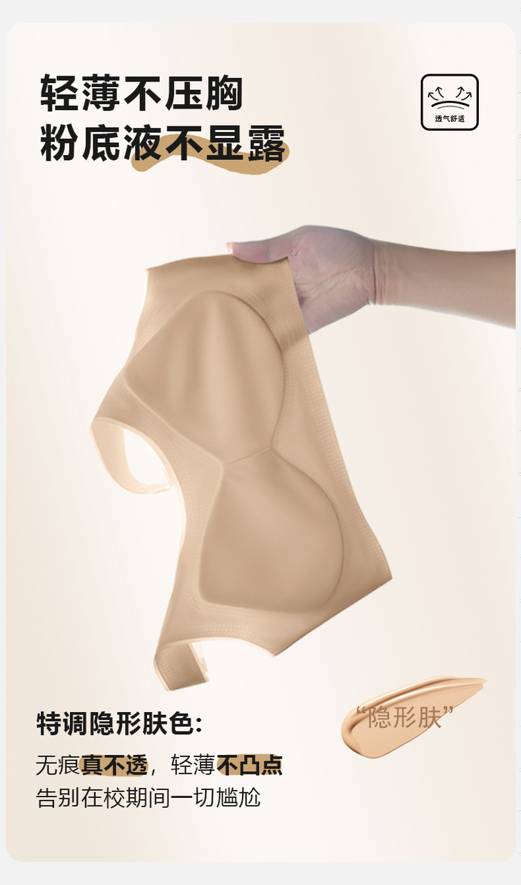 🔥为什么99%的少女都抢粉底液内衣?4大痛点一招解决! ⑴“隐形力MAX”- 穿校服、紧身白T再也不怕 ⑵“舒适度爆表”- 跑步运动🏊不闷汗 ⑶“安全感十足”- 不怕肩带滑落、跑杯尴尬 ⑷“超薄零凸点”- 会呼吸的空气杯,告别尴尬