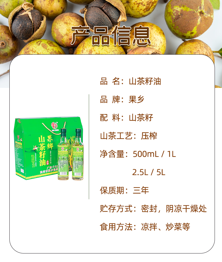 果乡山茶籽油 2.5L礼盒(500ml×5)