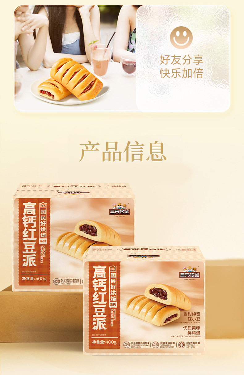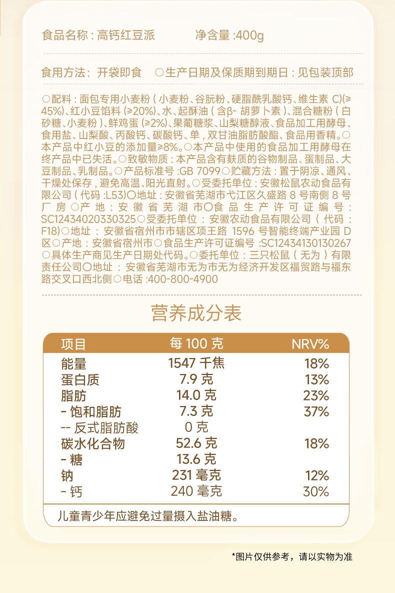 三只松鼠 高钙红豆派400g(每箱约8个)