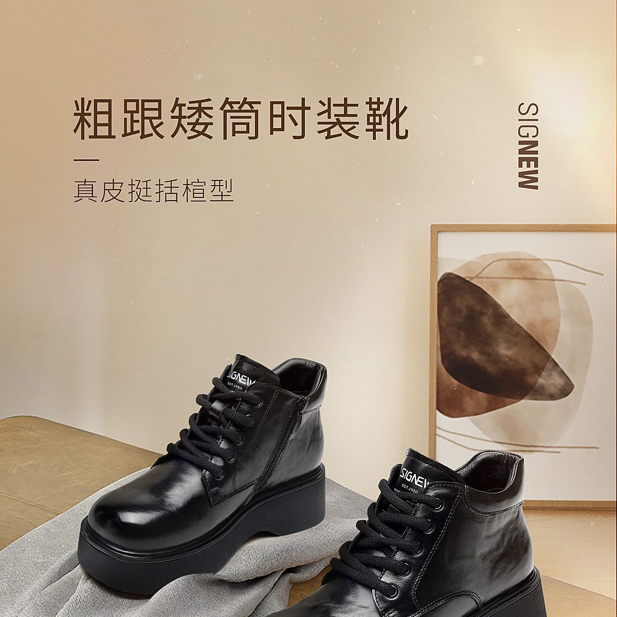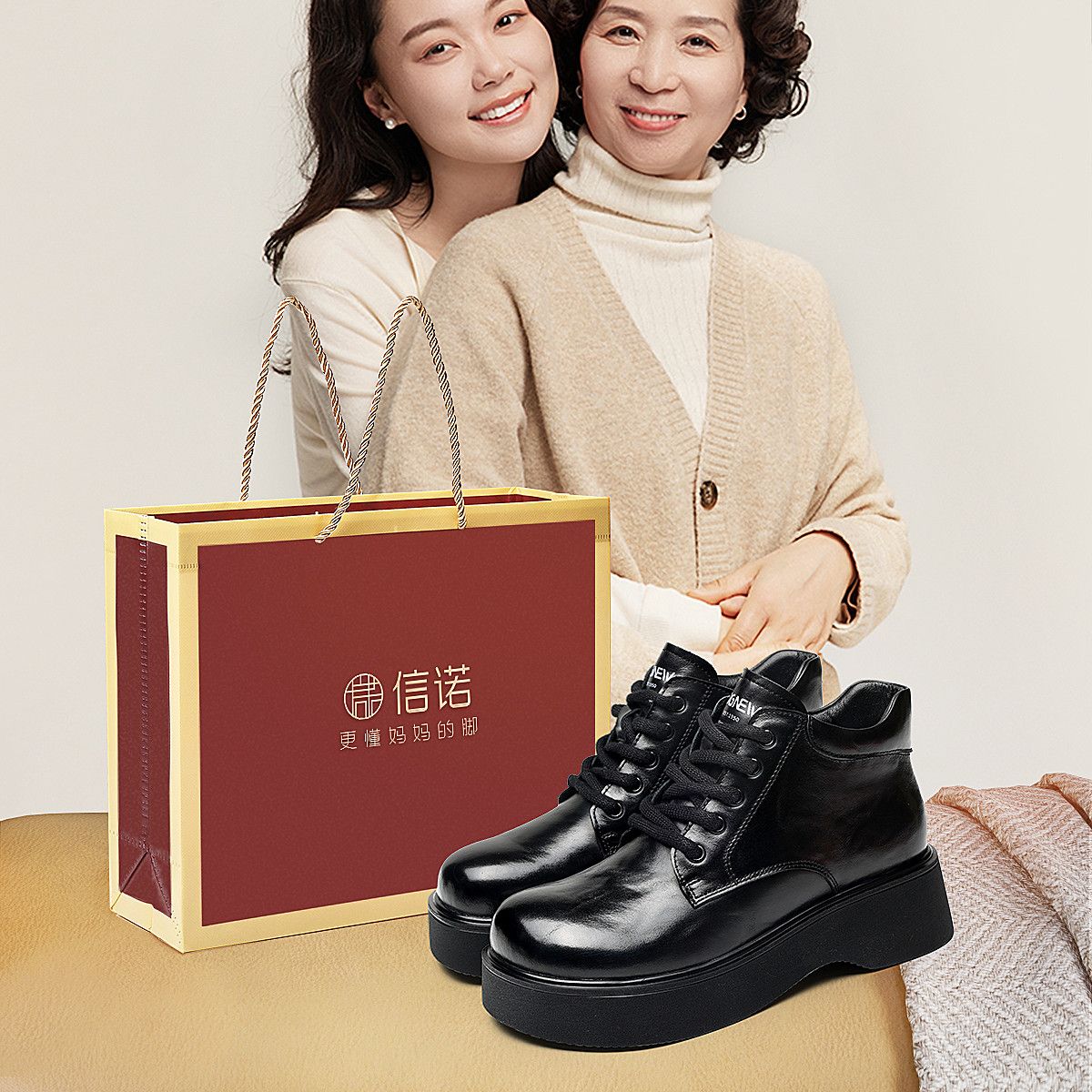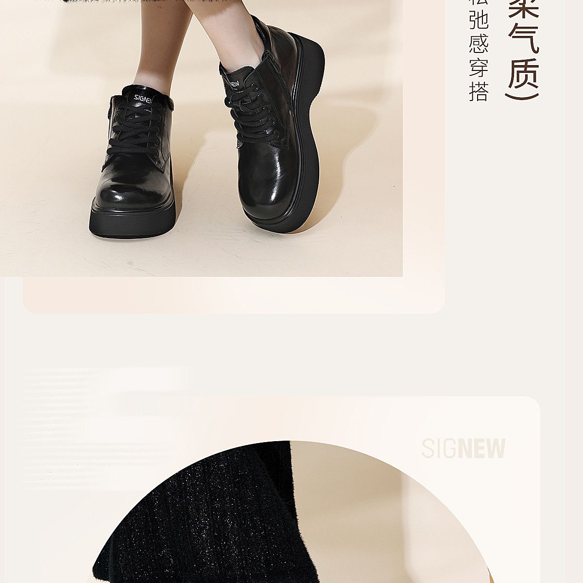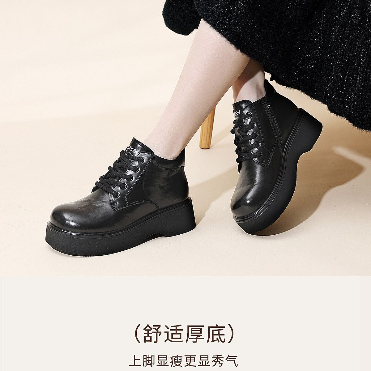 信诺妈妈鞋时尚百搭厚底短靴女2025冬季新款真皮加绒保暖棉鞋皮鞋5M590-5D