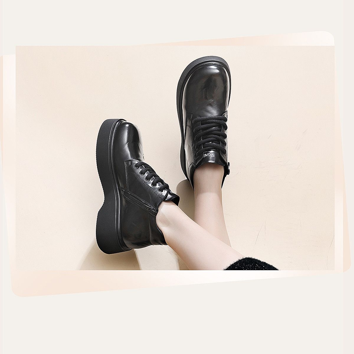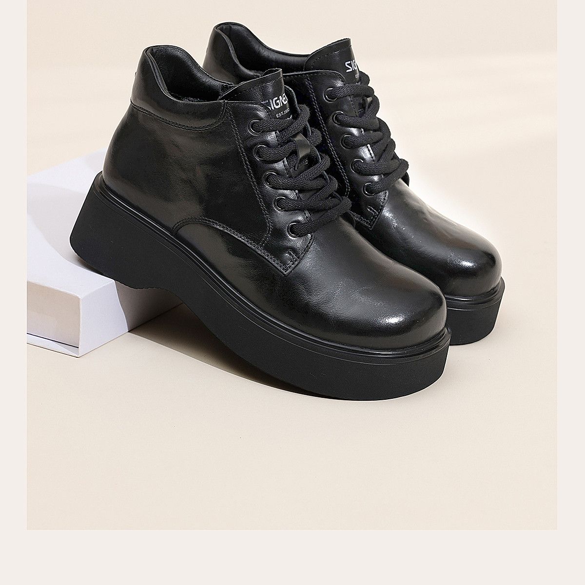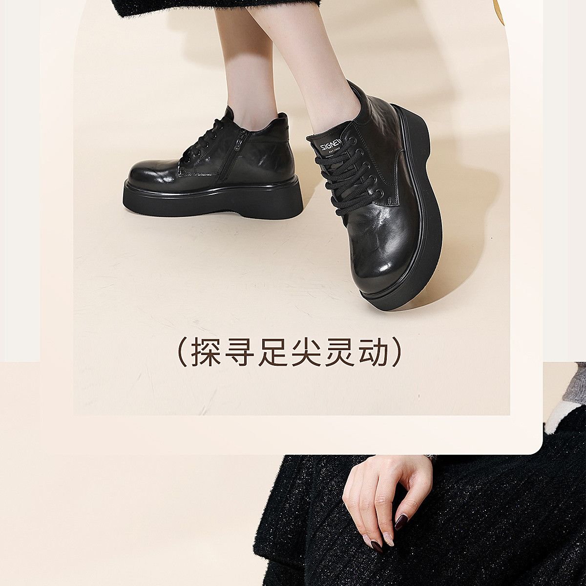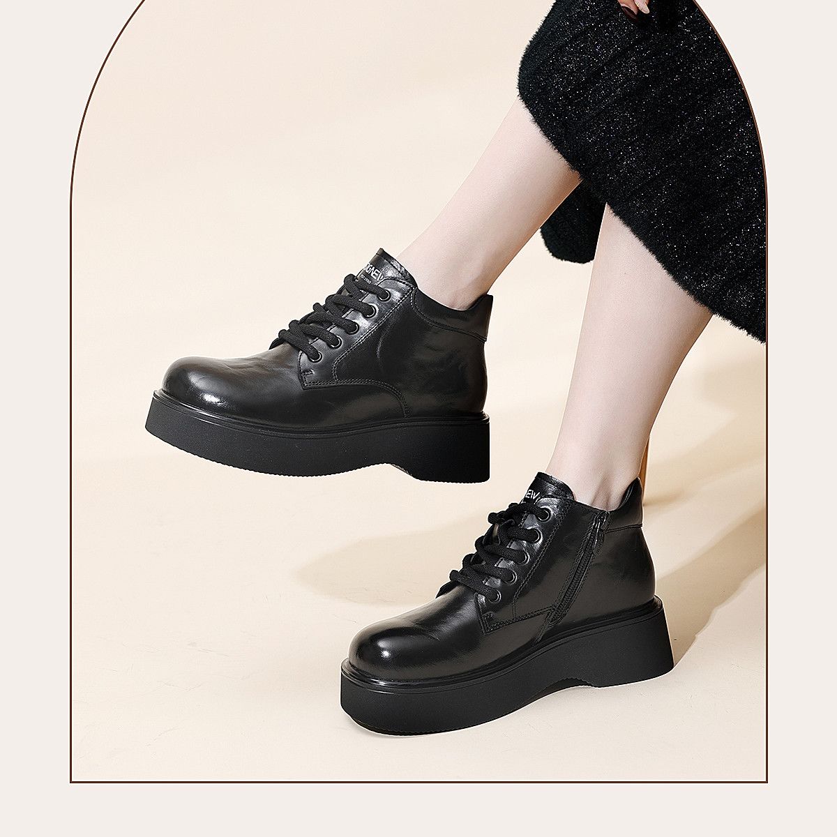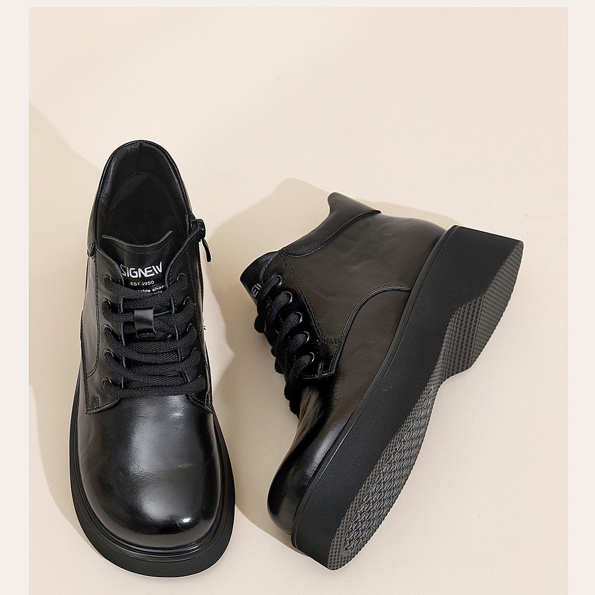 信诺妈妈鞋时尚百搭厚底短靴女2025冬季新款真皮加绒保暖棉鞋皮鞋5M590-5D