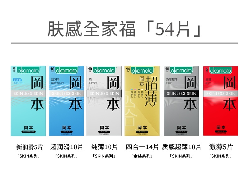 【SKIN全家福】54片金装SKIN系列 多重体验香草润滑紧缩 touch系列 199-100、399-200 OKAMOTO冈本官方