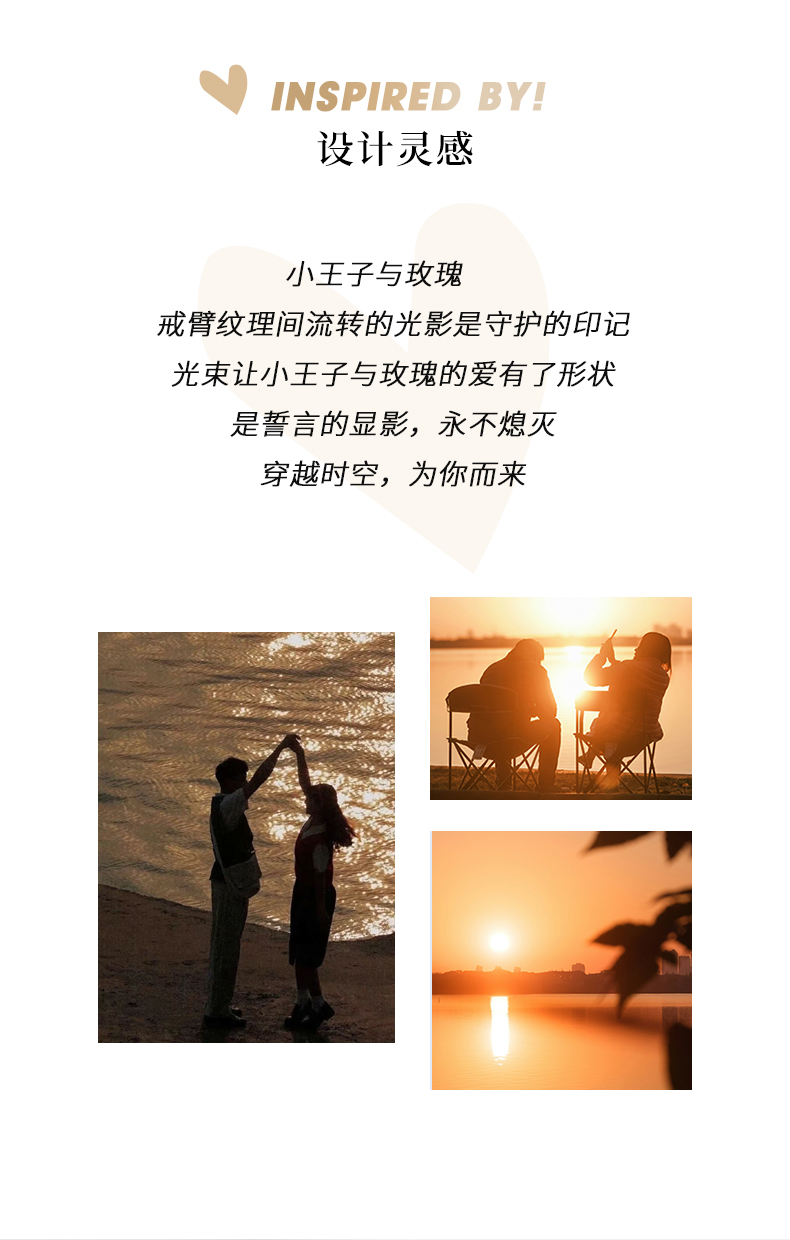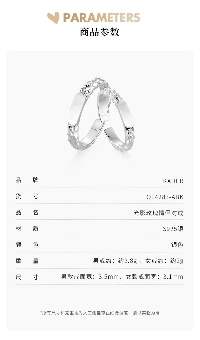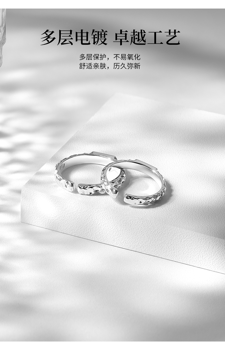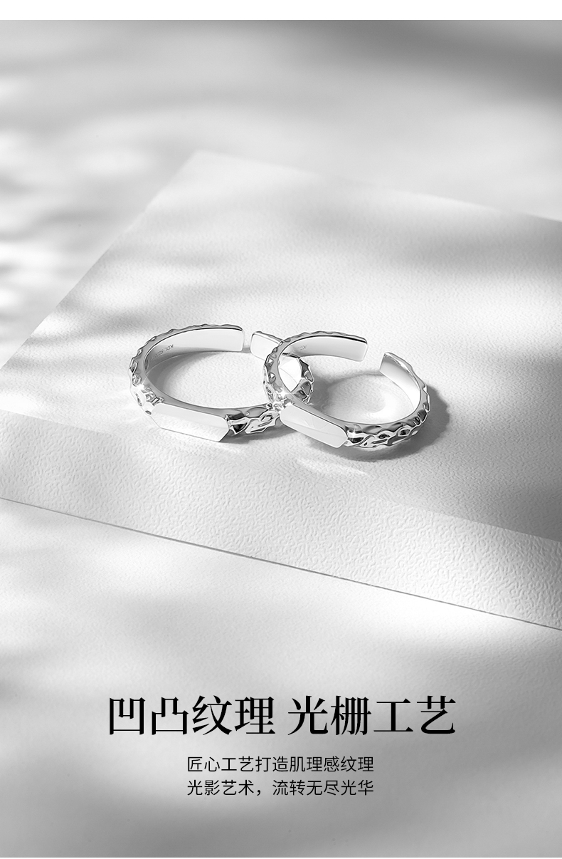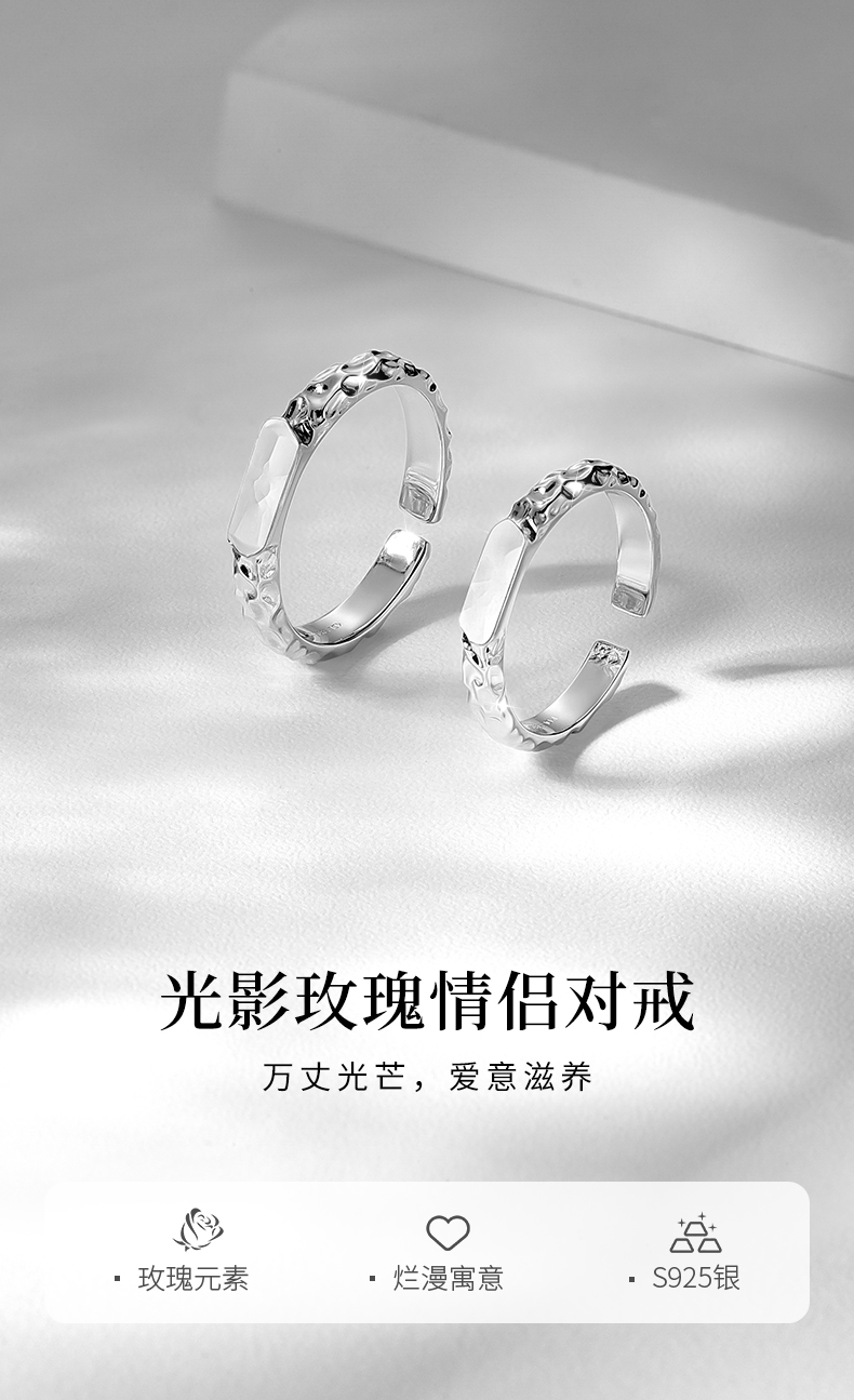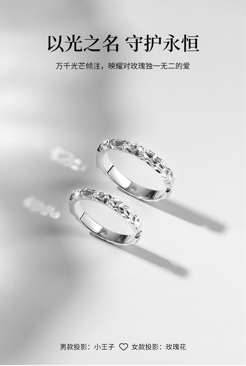 【可投影小王子与玫瑰】卡蒂罗KADER 光影玫瑰情侣对戒 925银原创设计简约大方纹理感素圈可调节一对 甜蜜饰爱