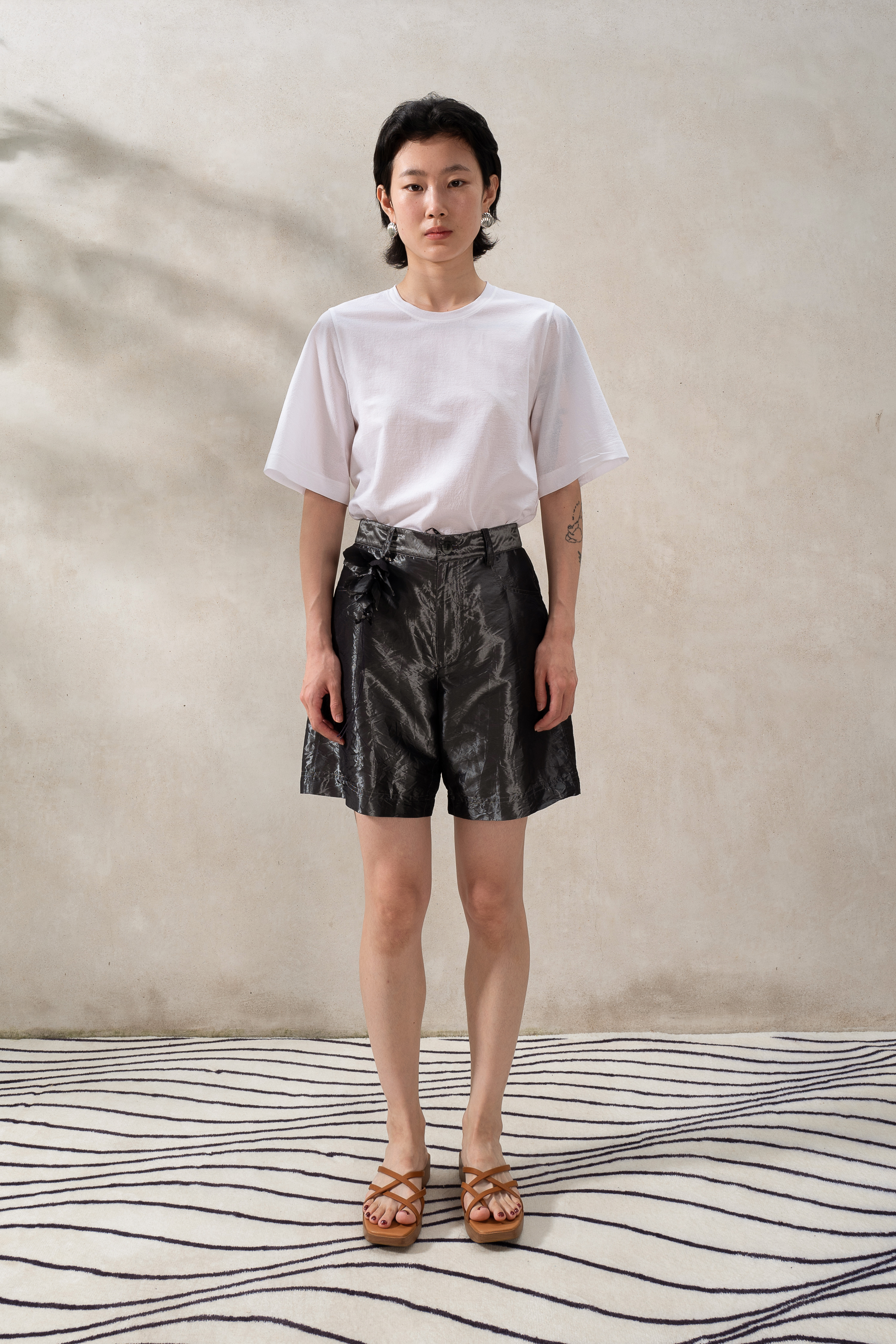 五袋式休闲短裤轻若⽆物,款式现代摩登,腰部内侧带有调节抽绳。