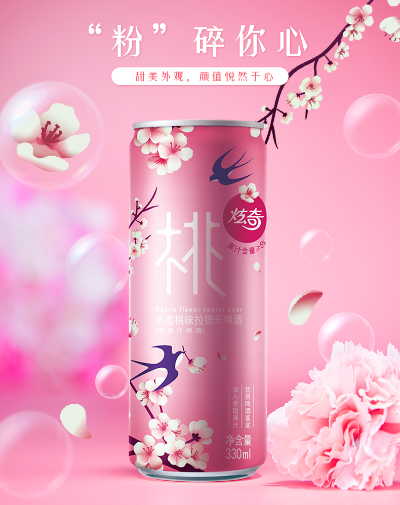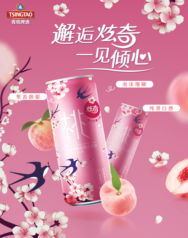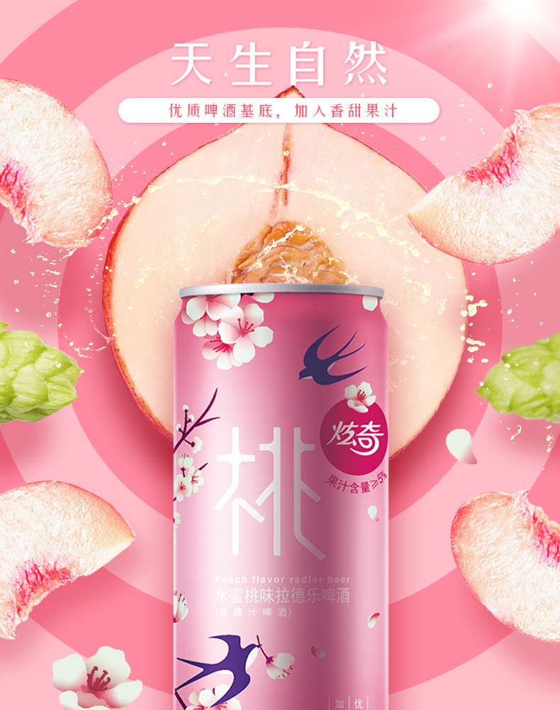 青岛啤酒9.5度330*12炫奇Radler水蜜桃味罐啤