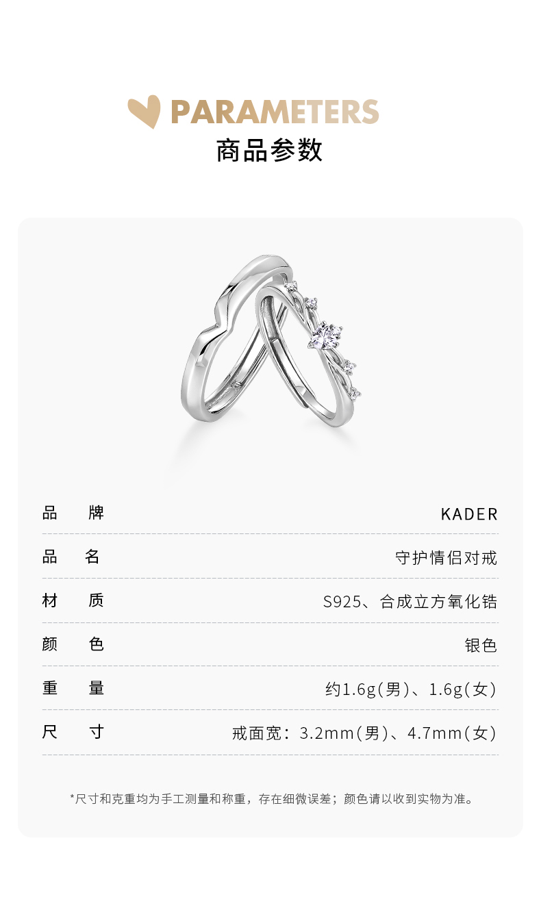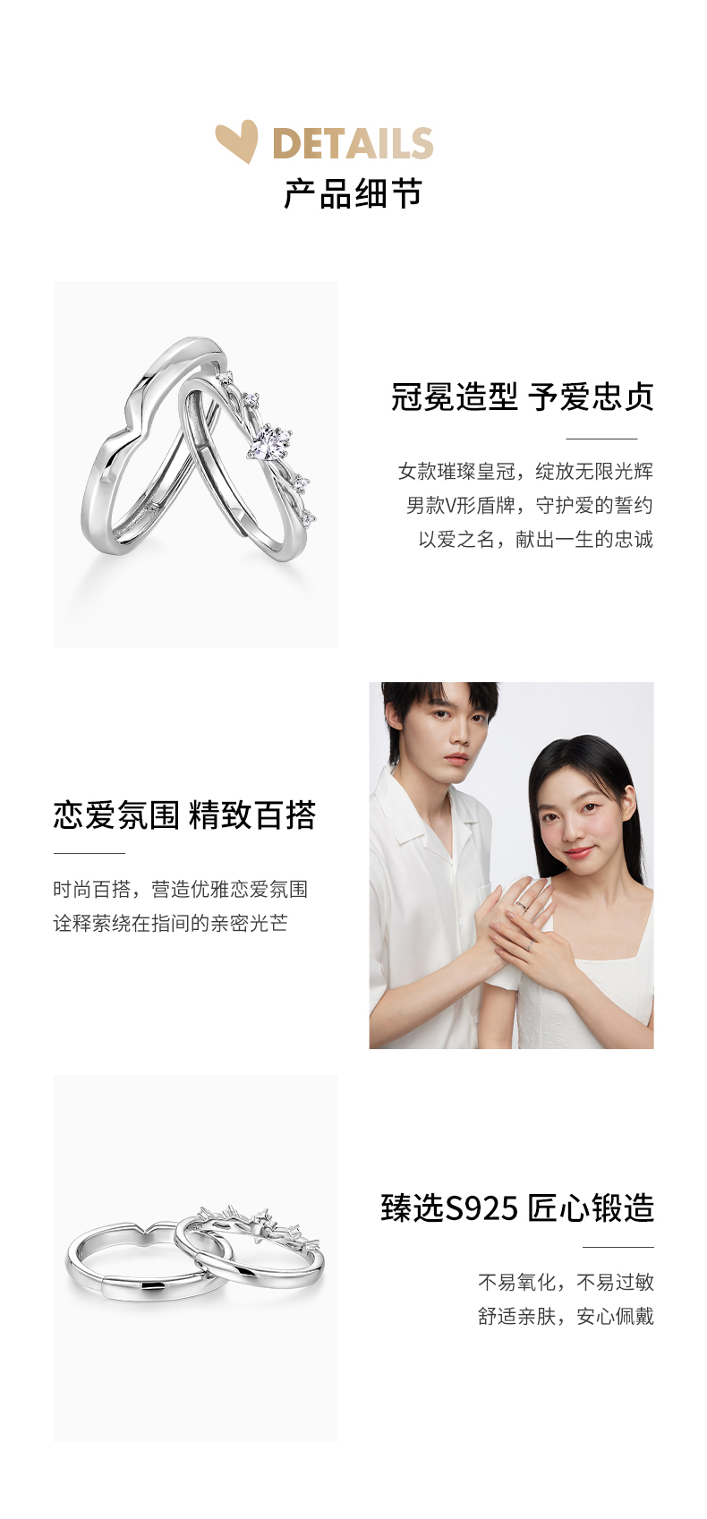 卡蒂罗/IDO联名 守护情侣对戒 925银以爱之名经典皇冠造型开口可调节设计一对 神圣浪漫简约闪耀配饰 女友 礼物 礼盒