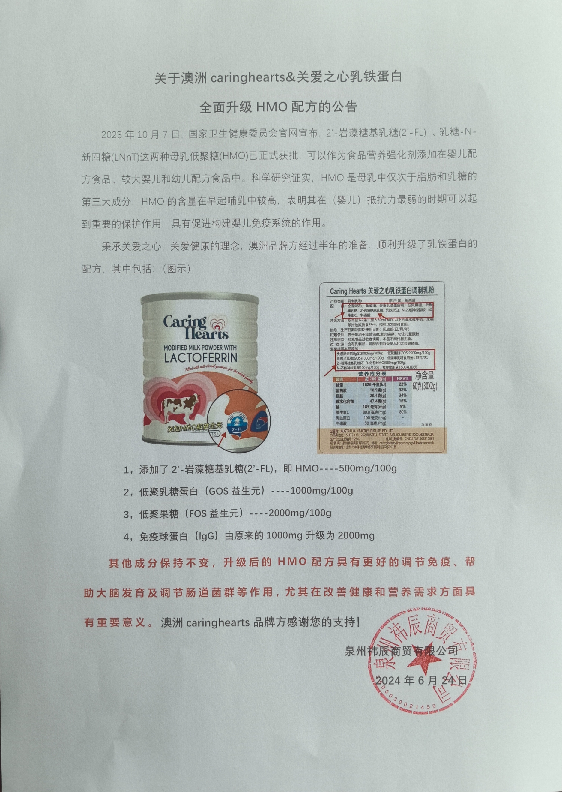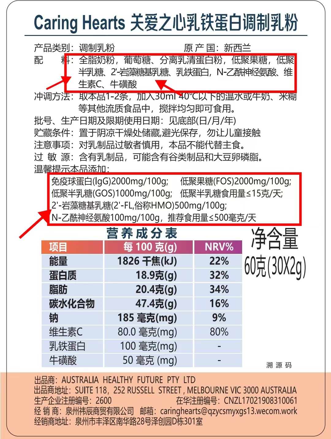 【品牌】澳洲caringhearts&关爱之心乳铁蛋白调制乳粉