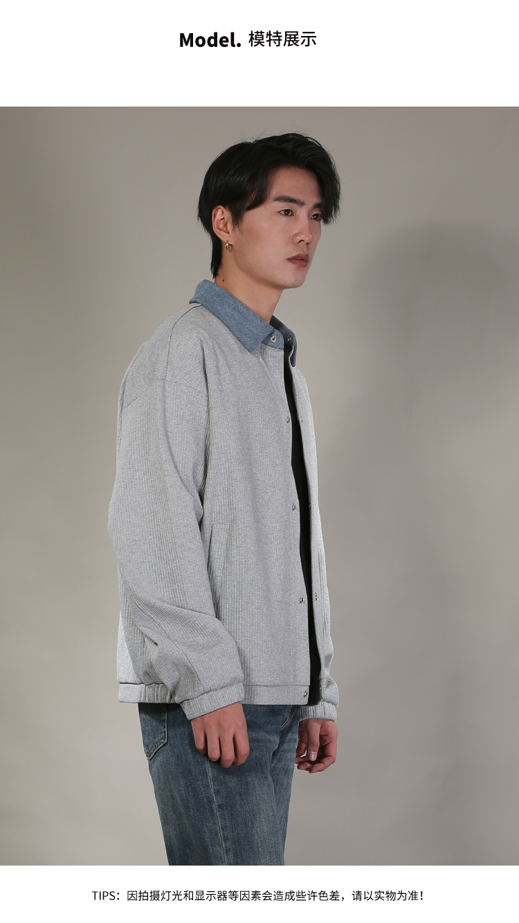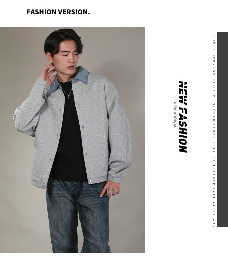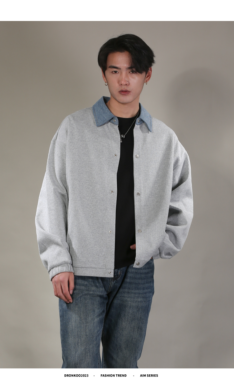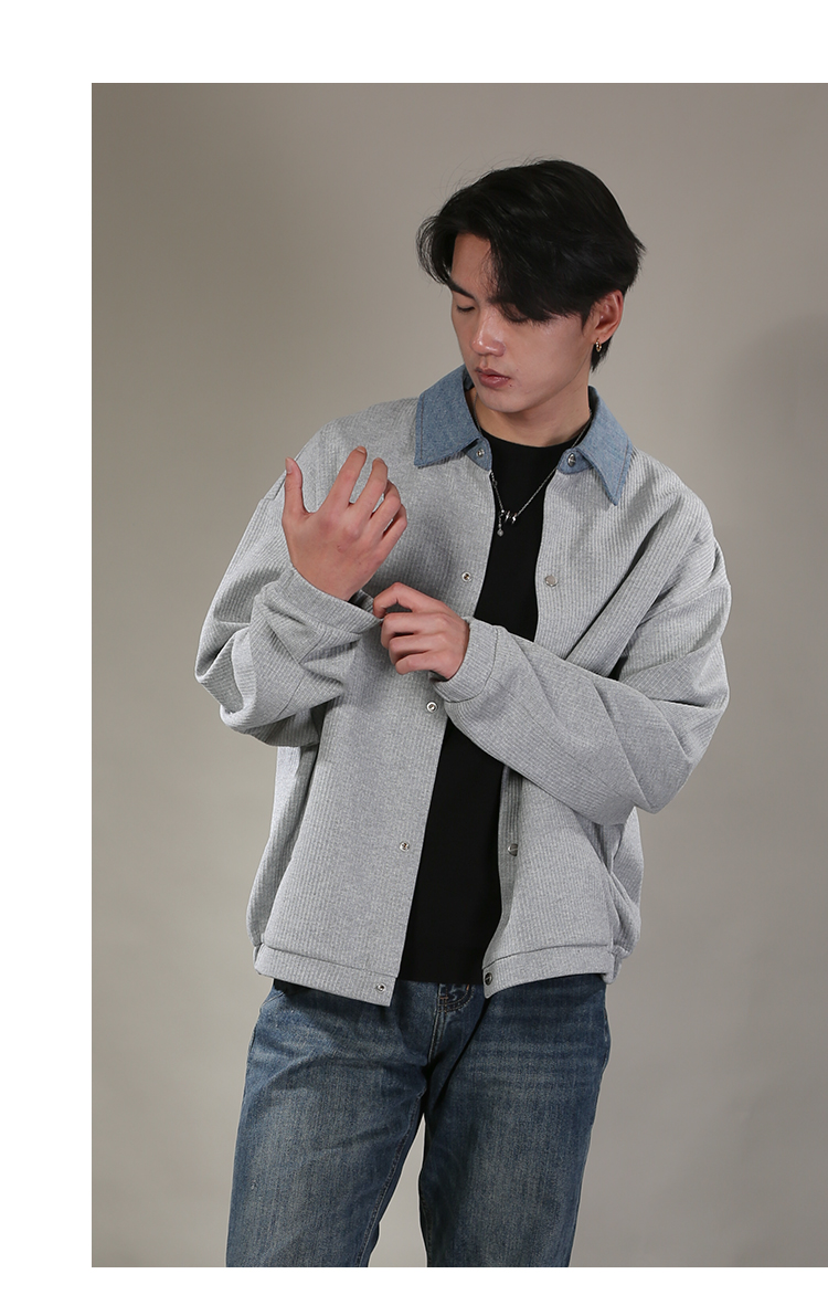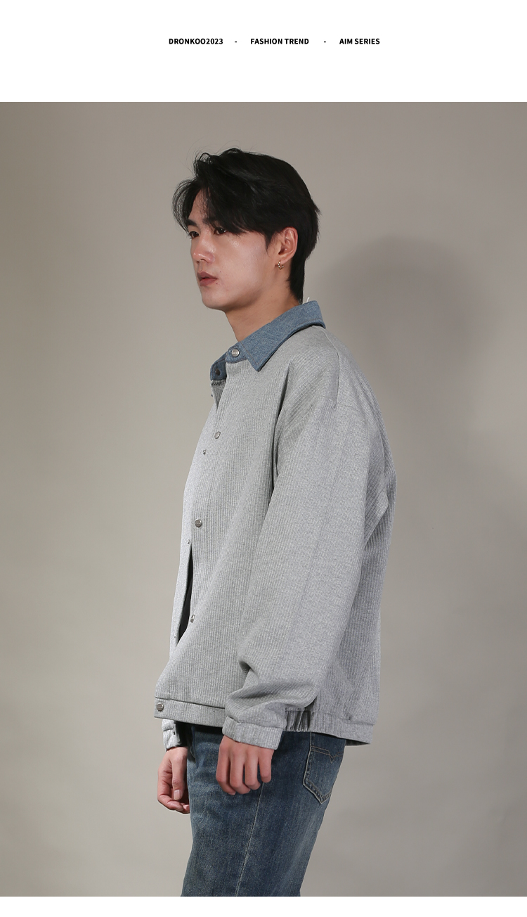 DRONKOO 2026 翻领牛仔拼领金属扣针织中厚开衫