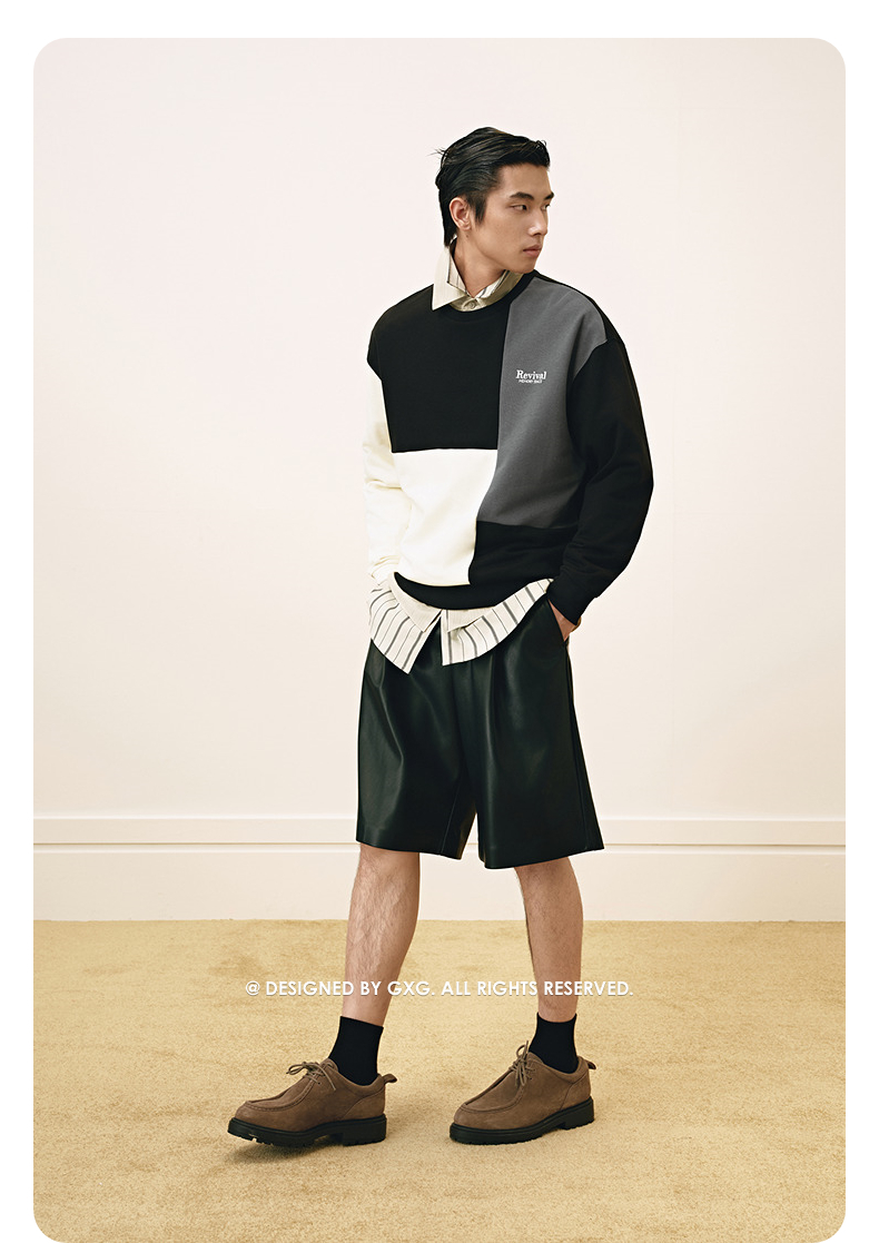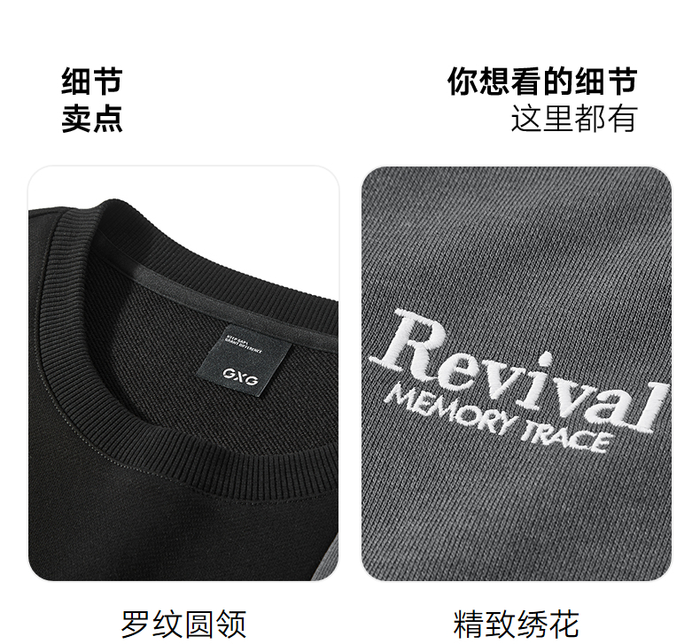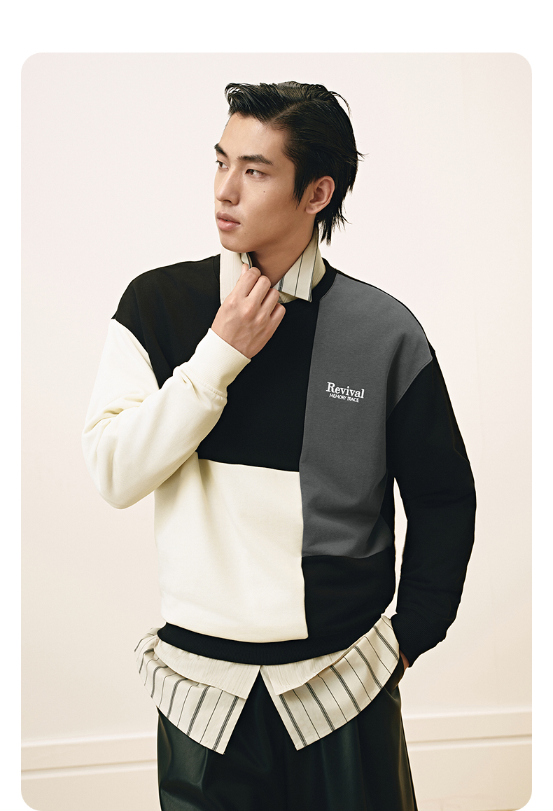 GXG男装 圆领色块拼接卫衣通勤长袖上衣撞色卫衣 2025春季热卖