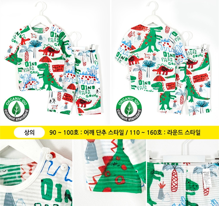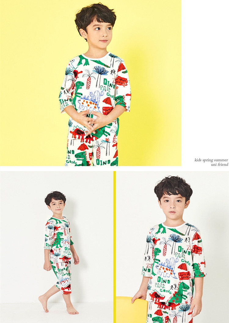 白底恐龙乐园(7分袖竹节棉)unifriend新款韩国童装夏季宝宝家居服7分短袖男女儿童睡衣