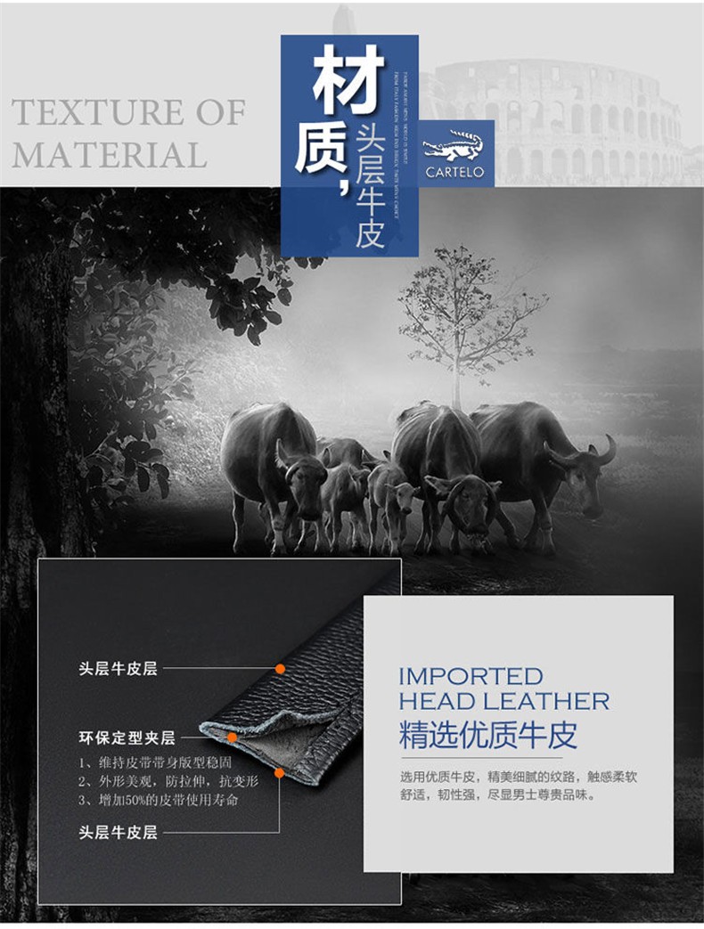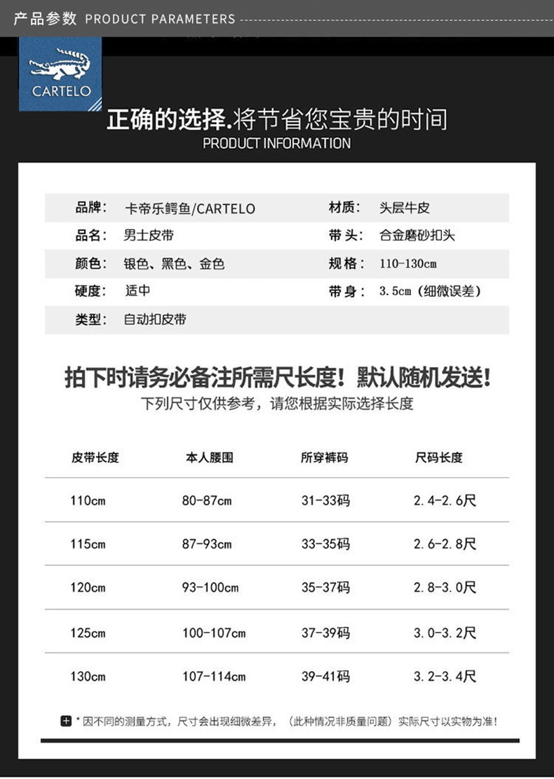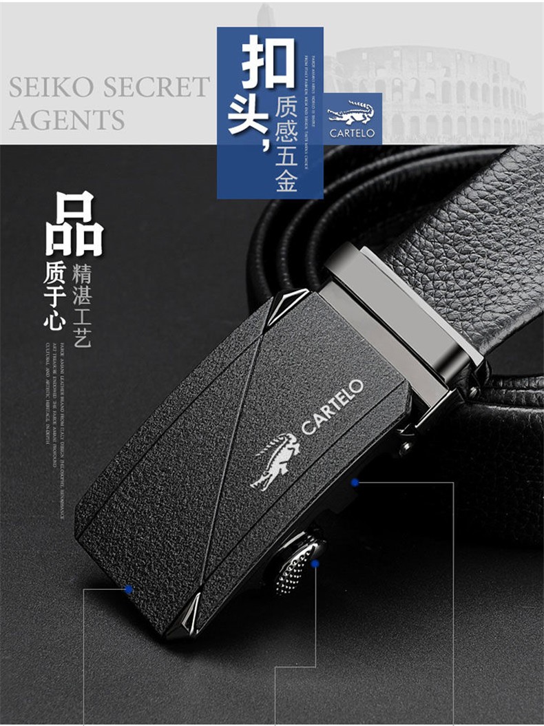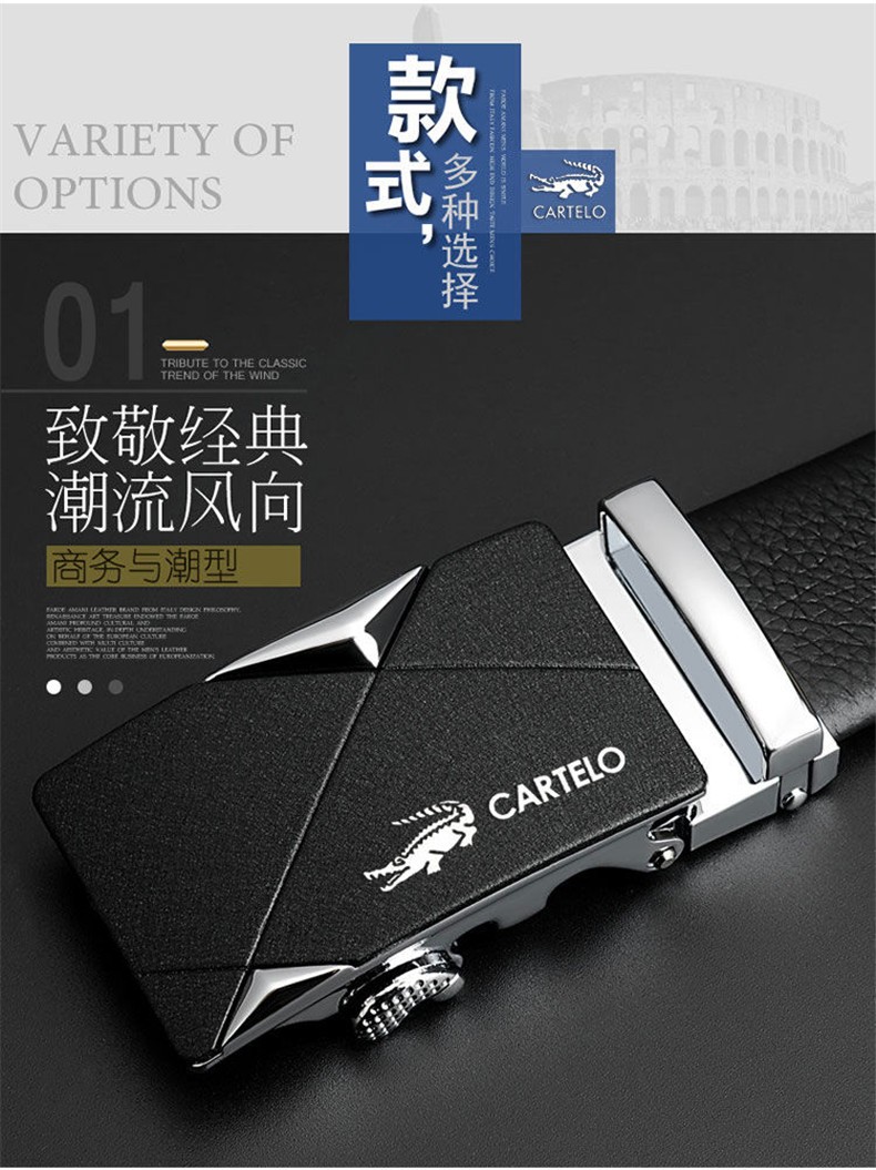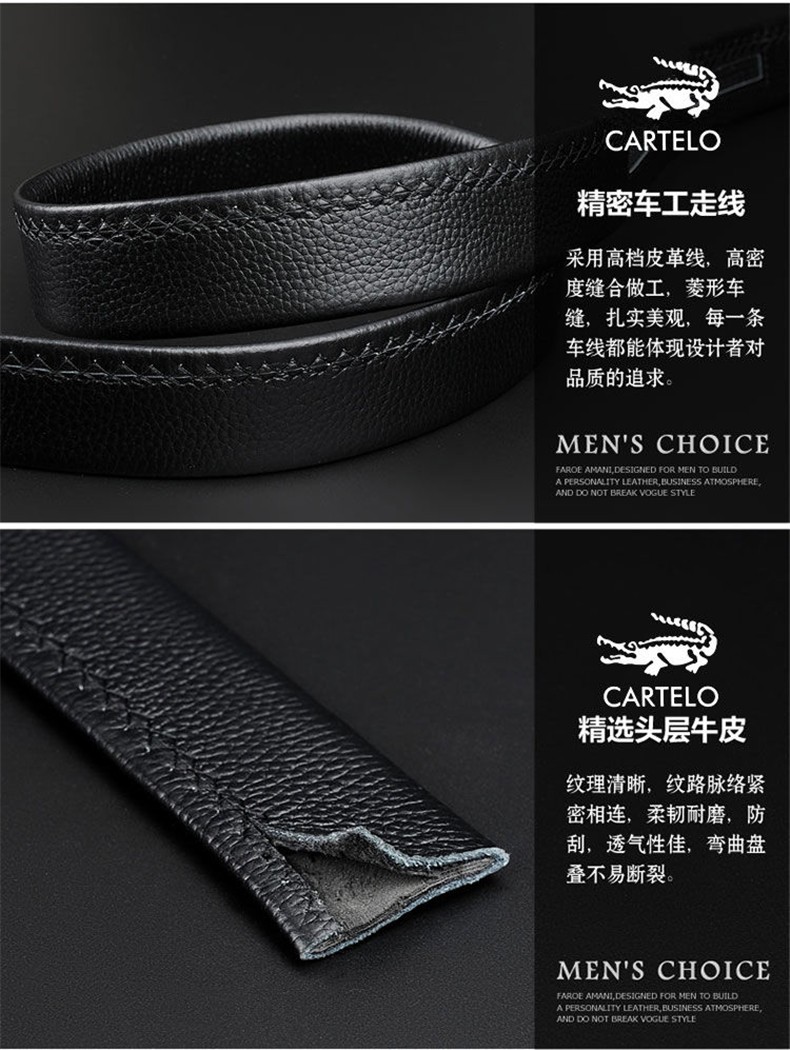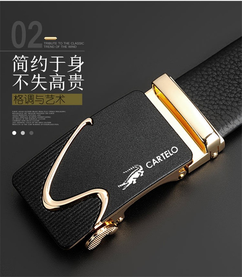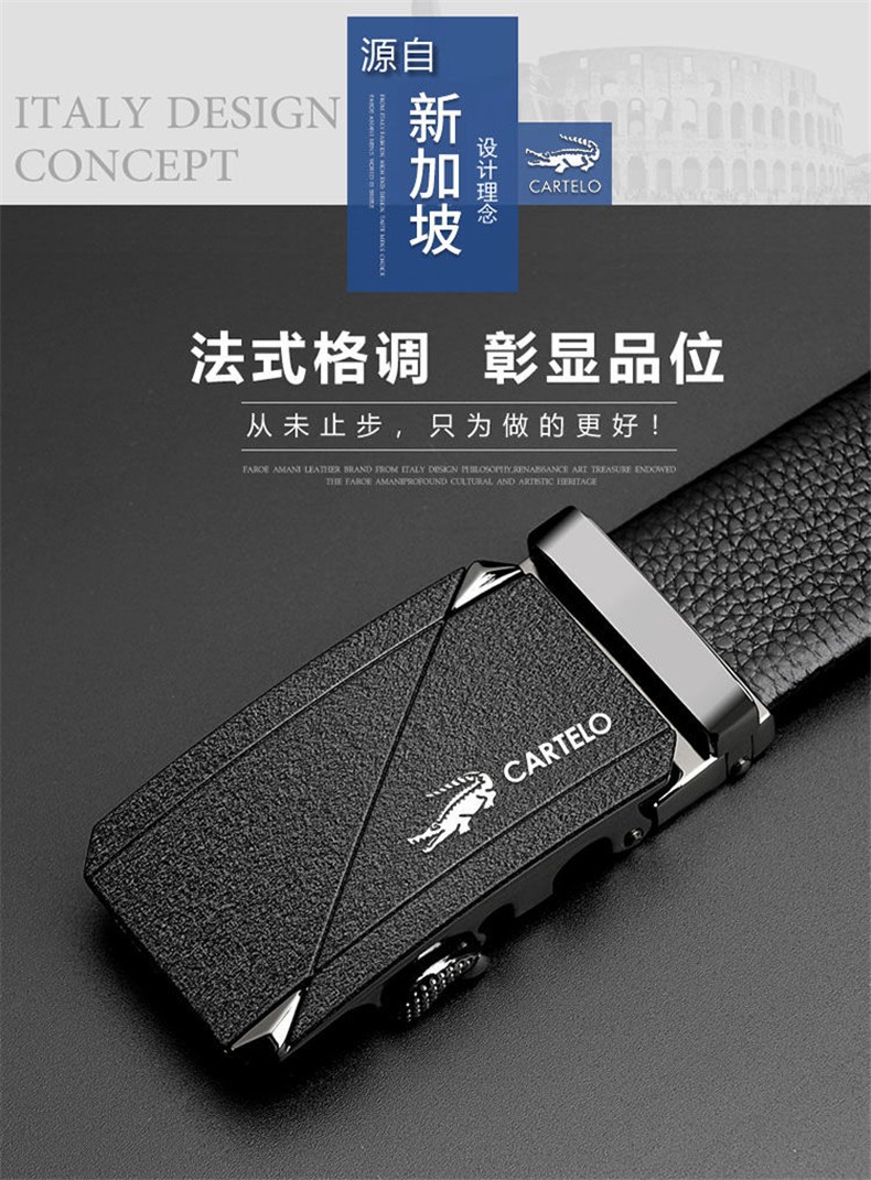 CARTELO/卡帝乐鳄鱼 KA222 头层牛皮 男士皮带 卡扣 金色JPY带授权招加盟代理