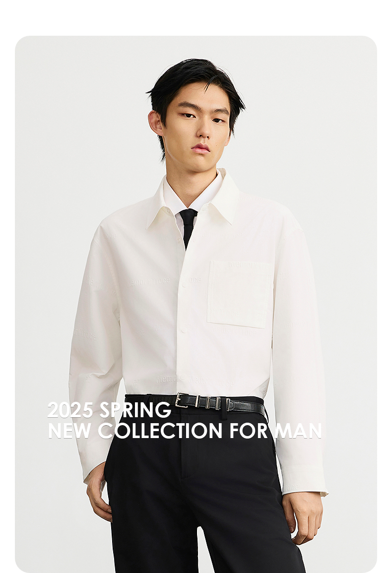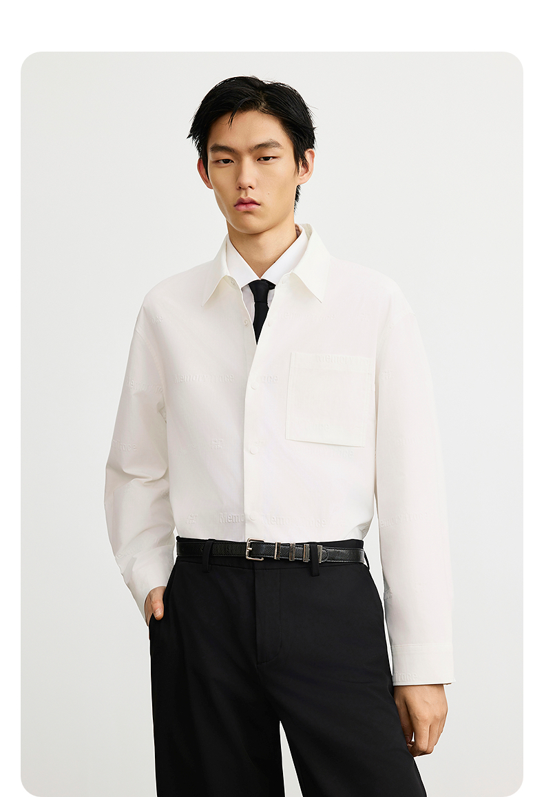 GXG男装 白色立体字母简约时尚长袖衬衫25年春季热卖G25X031021