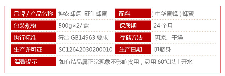 神农蜂语野生蜂蜜礼盒500g*2