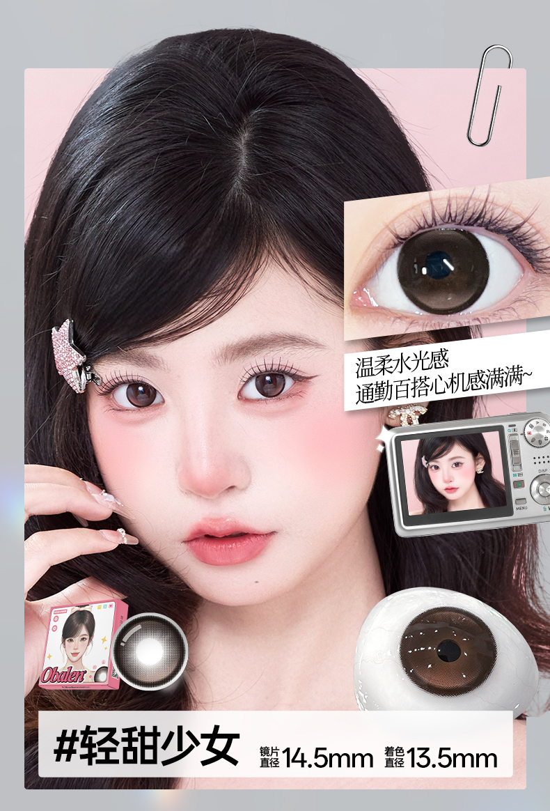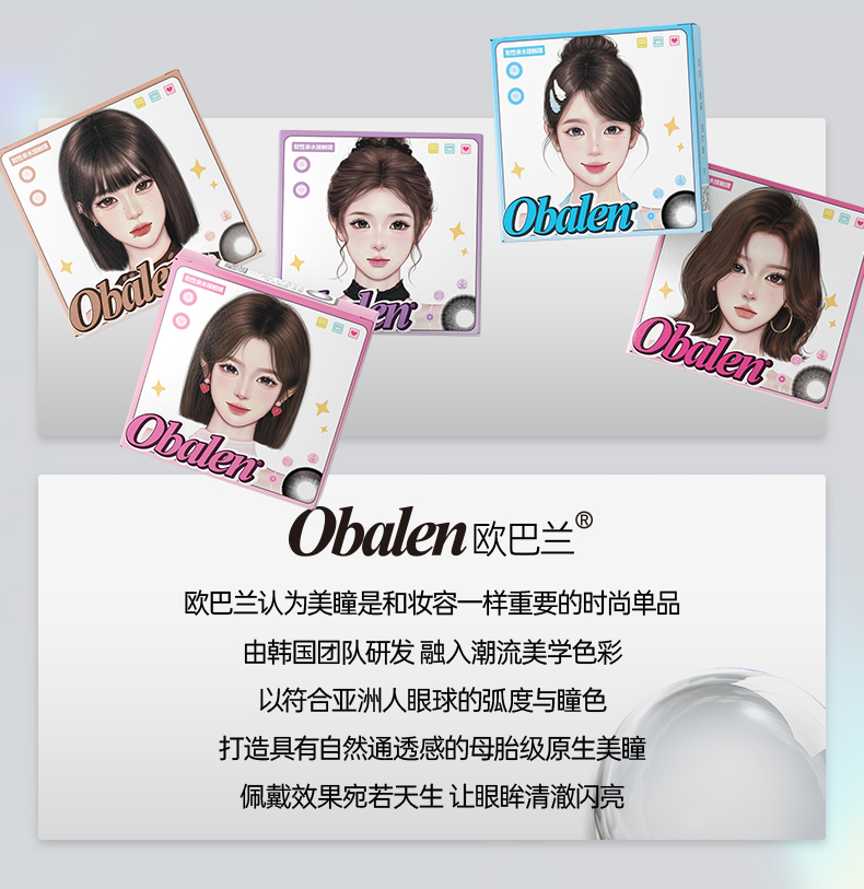 新品【玻璃珠】方盒系列Obalen欧巴兰淡颜天菜【轻甜少女】14.5大直径日常伪素颜神器百搭自然款半年抛美瞳非离子隐形眼镜2片装