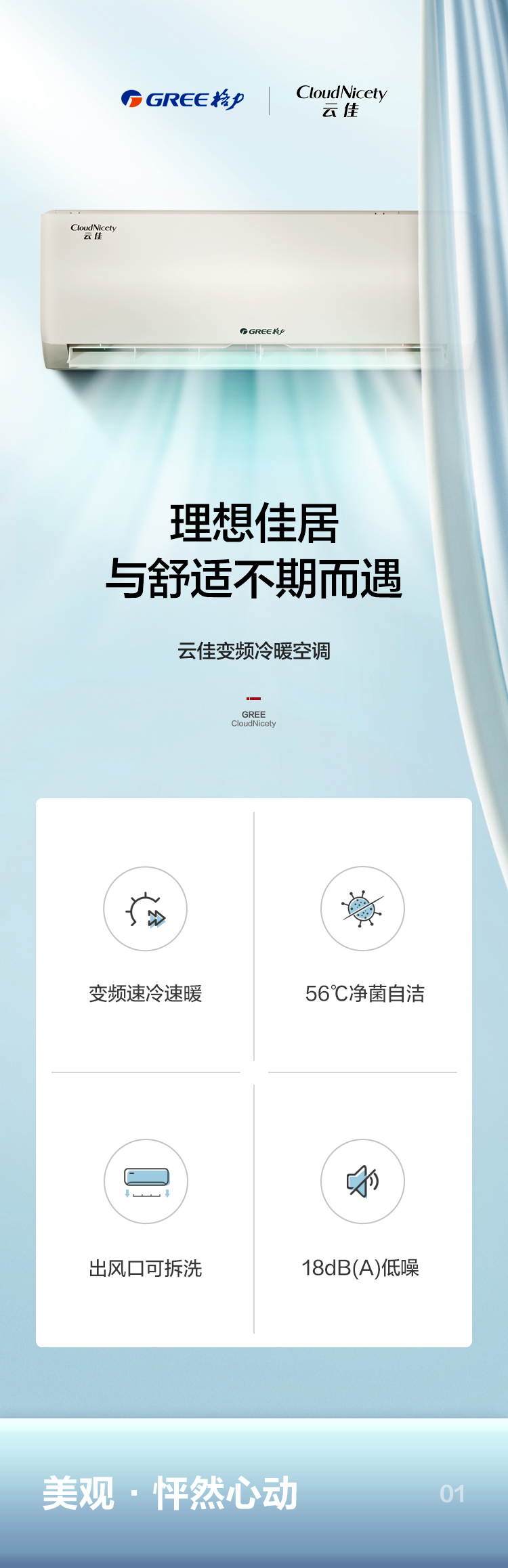 格力(GREE)1.5匹 云佳 新能效 变频冷暖 自清洁 壁挂式卧室空调挂机(KFR-35GW/NhGe3B 珊瑚玉色)