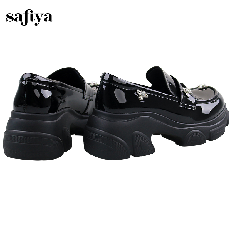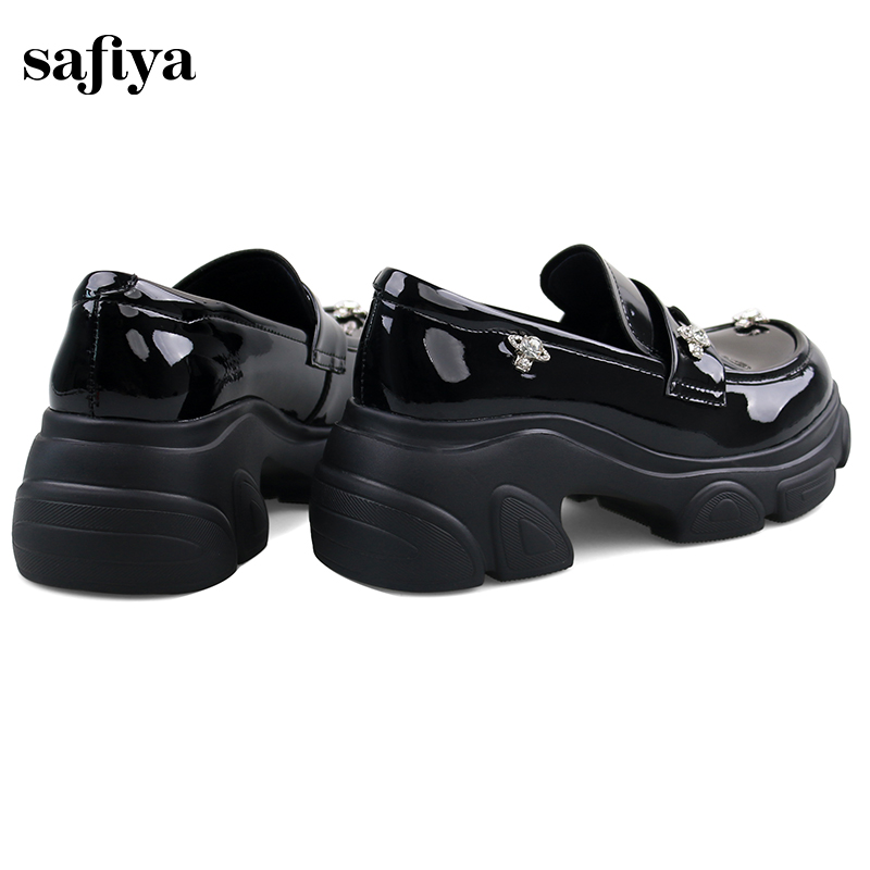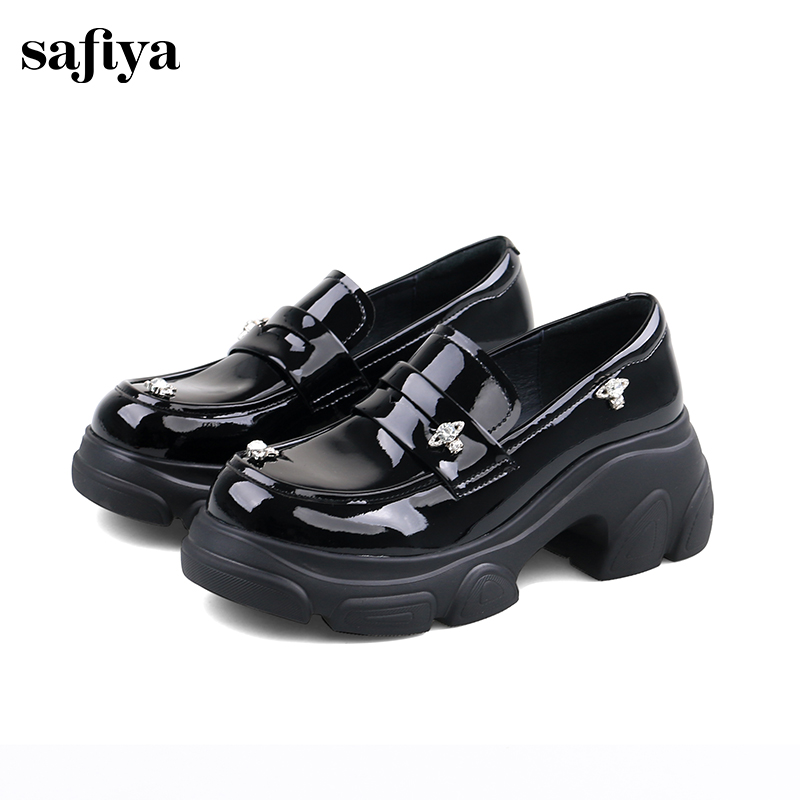 Safiya/索菲娅2024秋学院风漆皮圆头百搭粗跟厚底英伦星钻小皮鞋 SF43112073