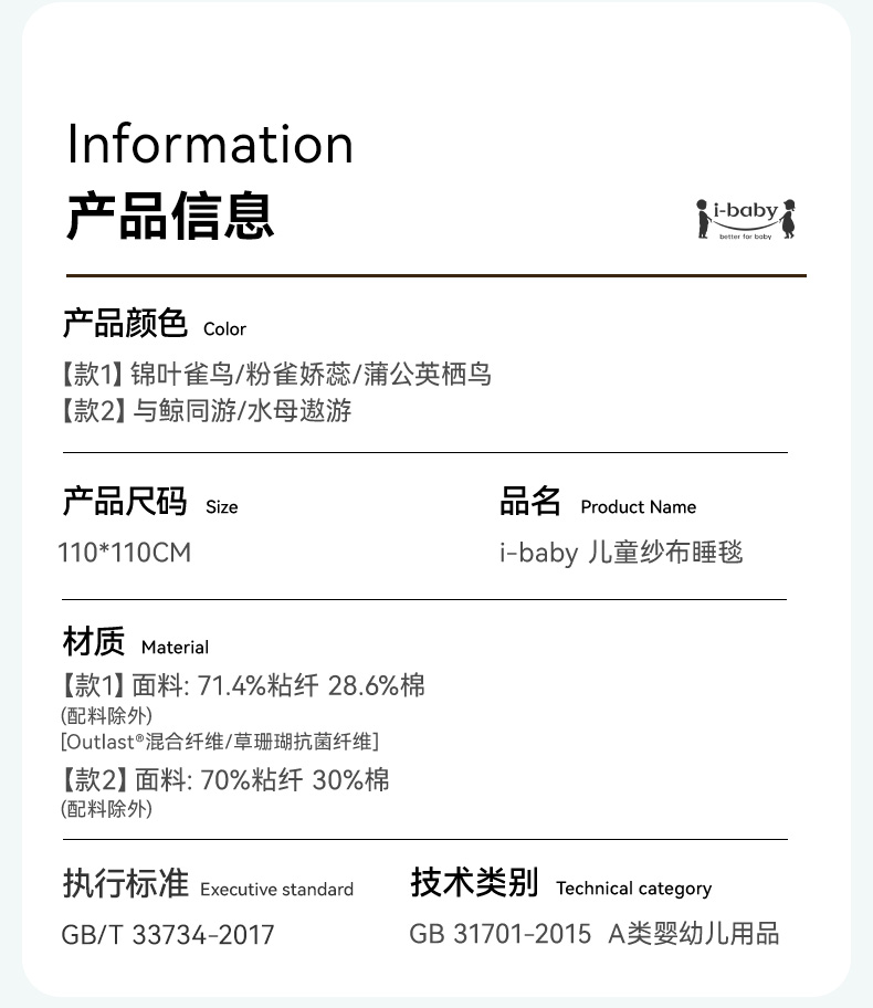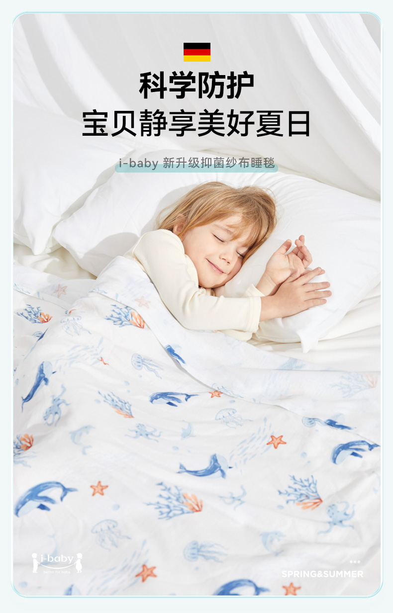 ibaby×outlast太空科技恒温防叮咬竹棉双层抑菌纱布睡毯