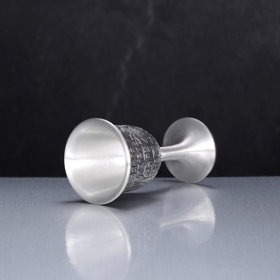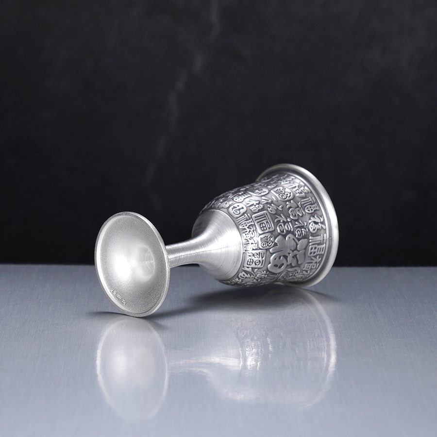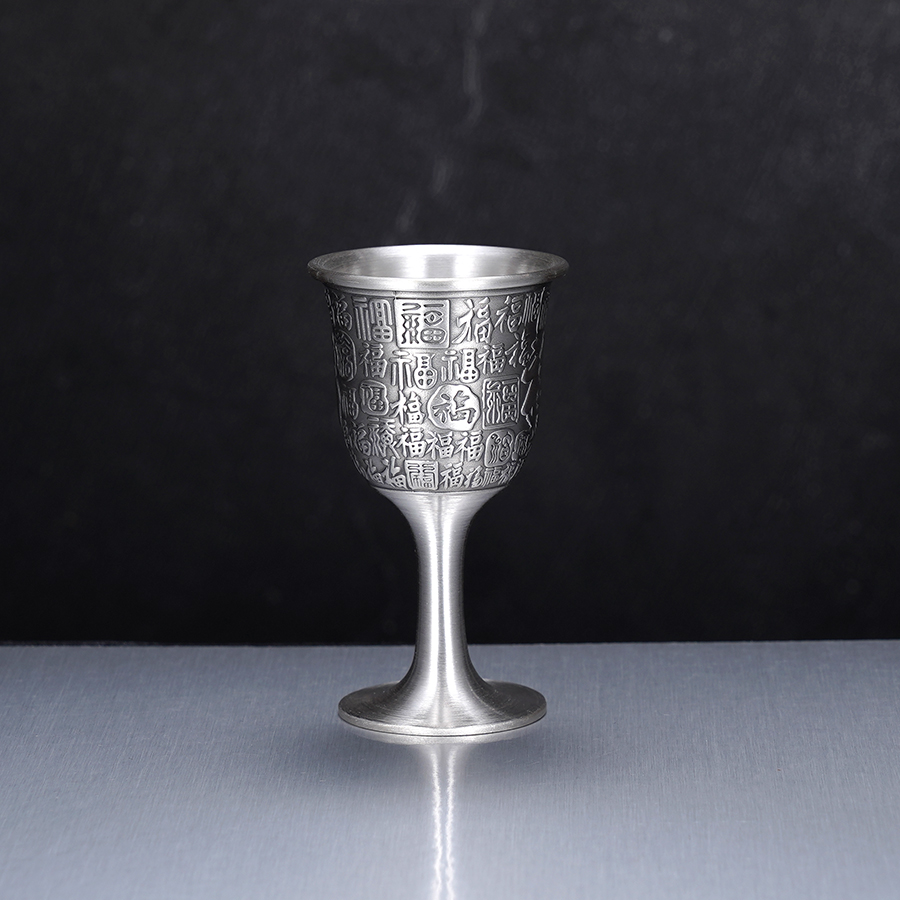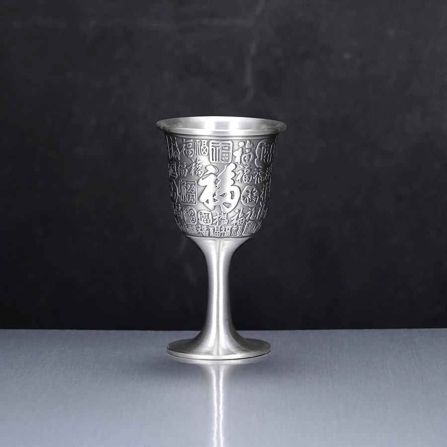 【寓意】:酒杯采“百福图”为创意,福字笔走龙蛇,韵味悠长,此款福字酒杯,善纳酒气,巧引酒香。预兆财源广进,福随酒至。