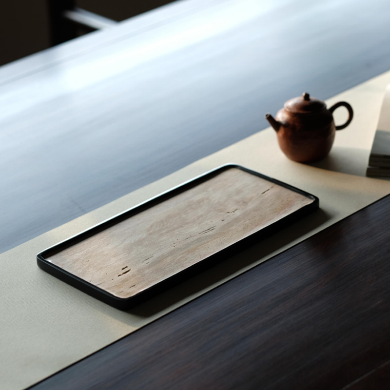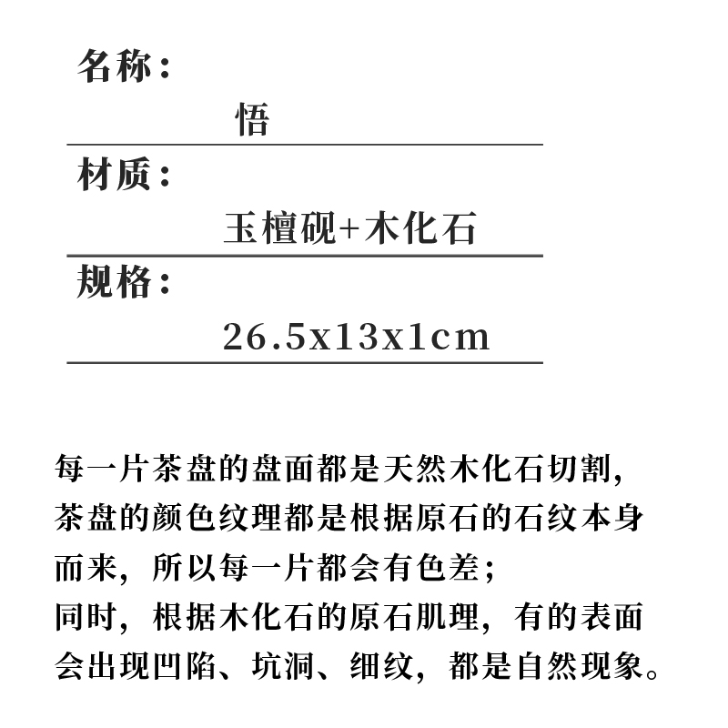 缘石台/悟/玉檀砚+木化石/茶盘26.5x13x1cm