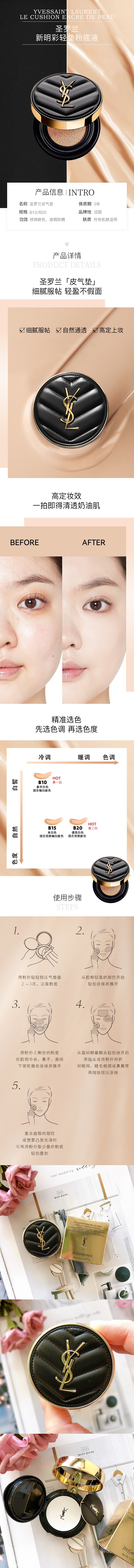 【658元会员福利】圣罗兰明彩轻垫粉底液14g SPF33PA++皮革质地