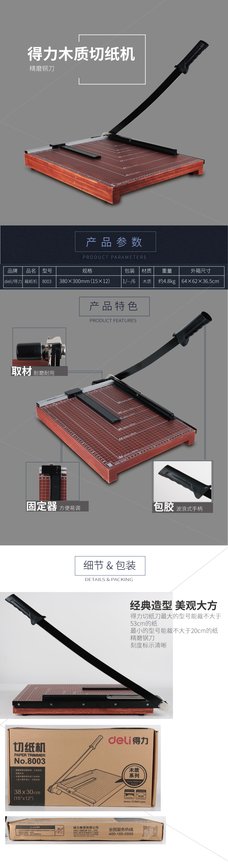 得力8003切纸机15"*12"(棕)(把)