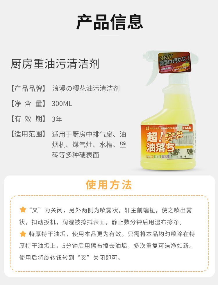 浪漫樱花厨房重油污清洁剂 油烟机清洗 强力去污清新