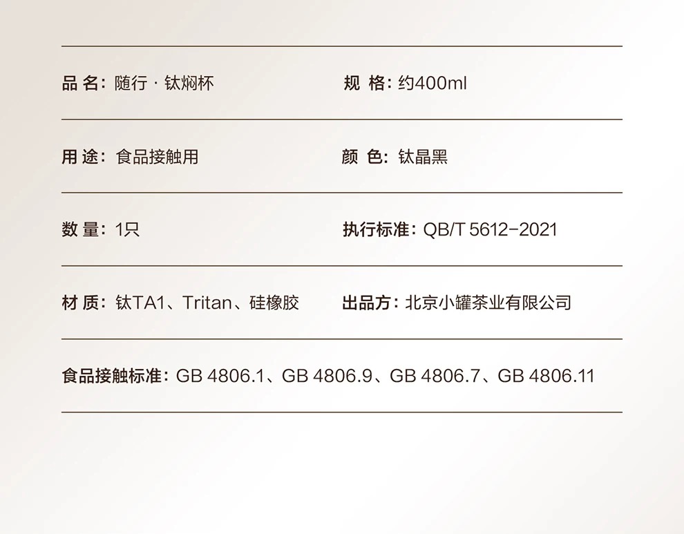 小罐茶纯钛随行焖闷杯双层真空保冷保温泡茶喝水杯子400ml送礼自用皆宜