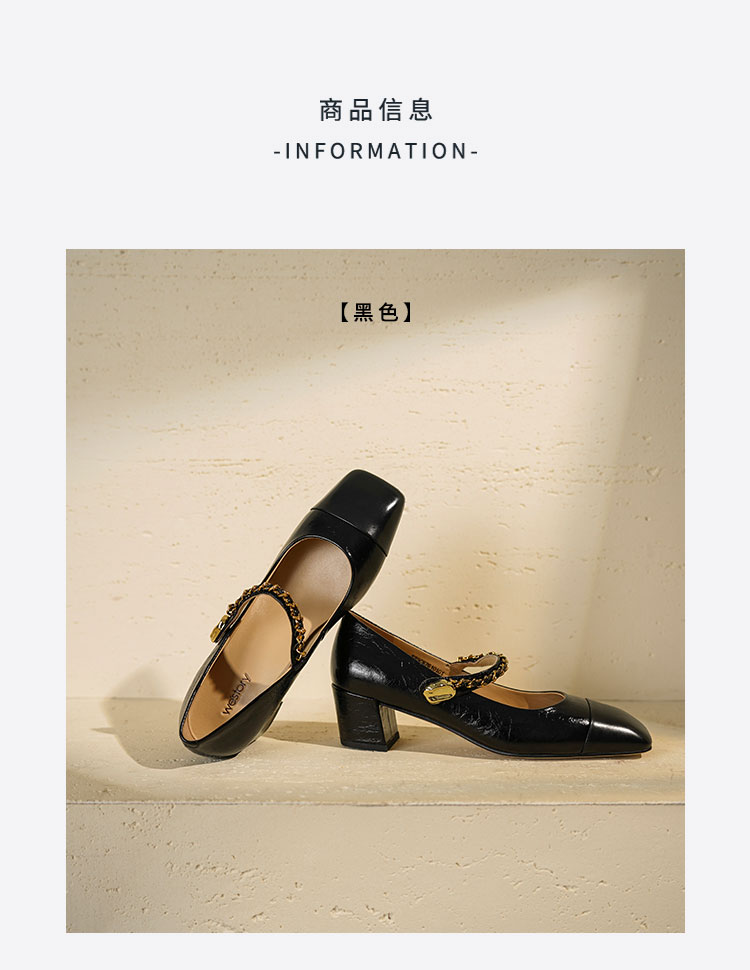 Westory2025年秋季方头中跟玛丽珍单鞋通勤百搭小香风浅口鞋S25CE76101
