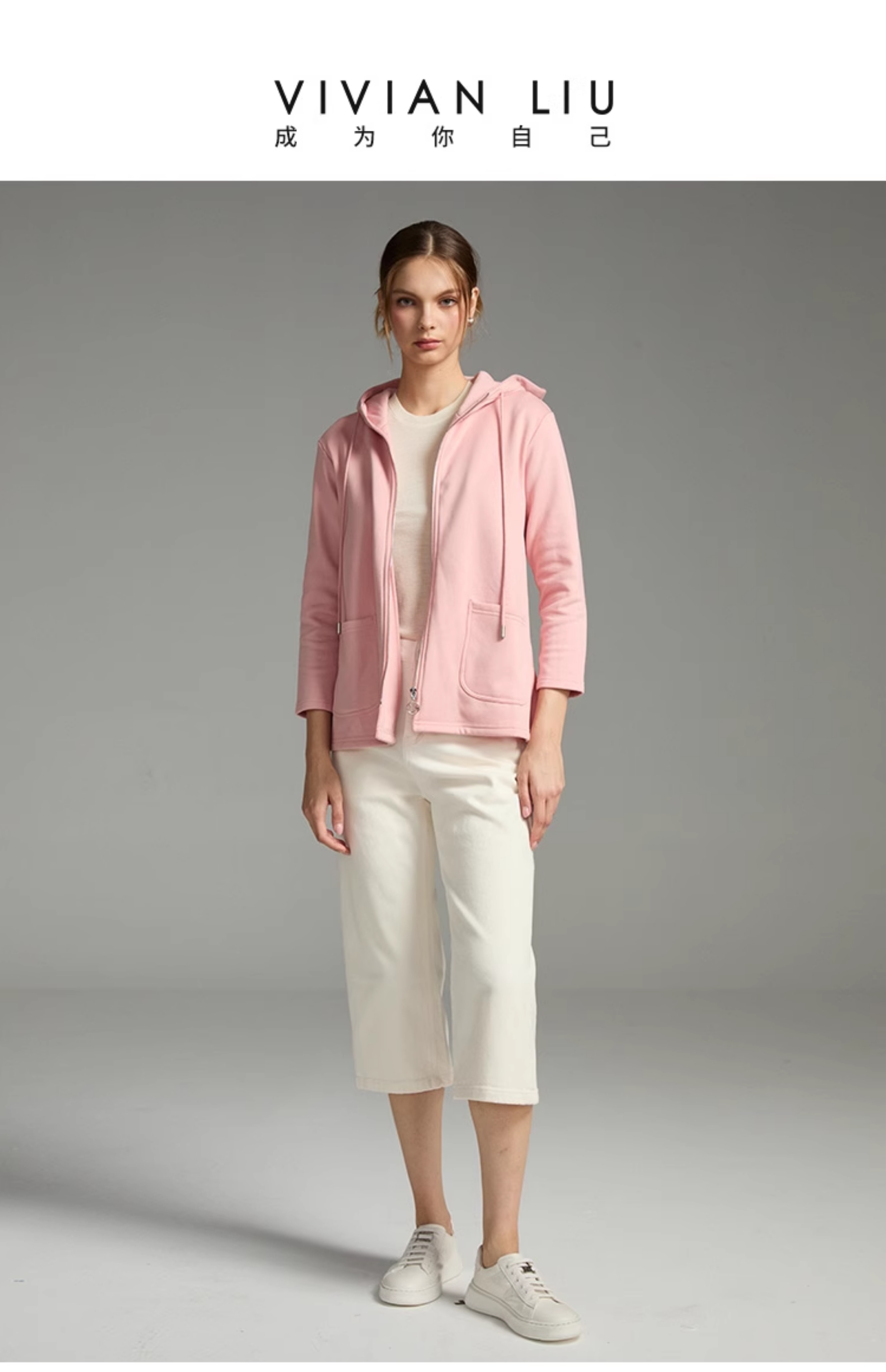 VIVIAN LIU薇薇安刘R2457302秋女装新款前开拉链连帽长袖针织外套
