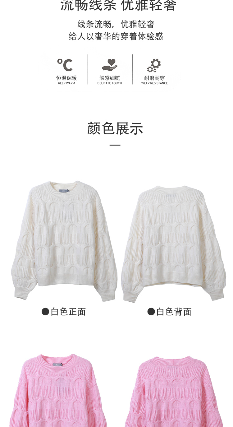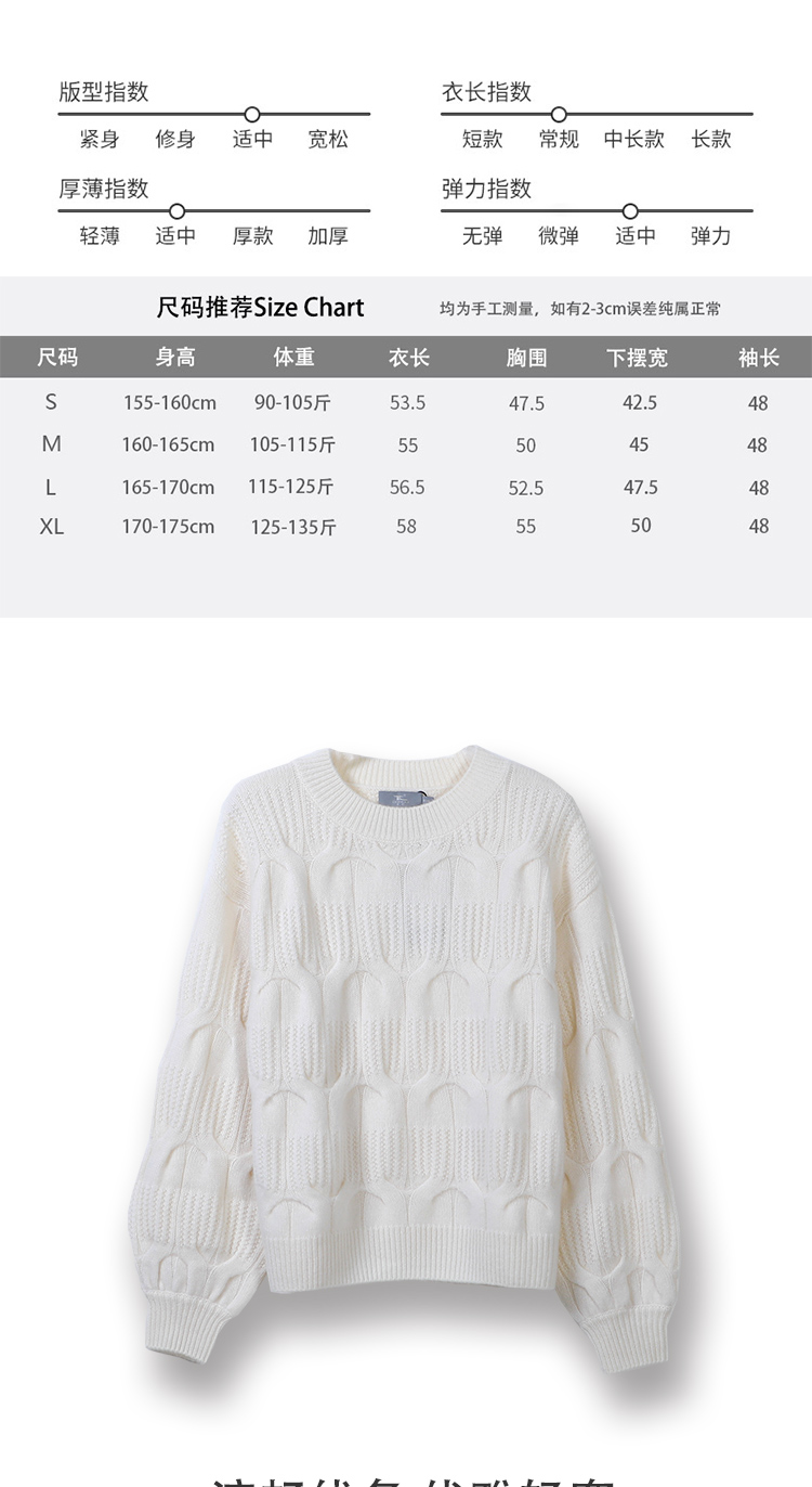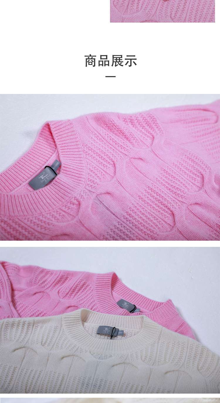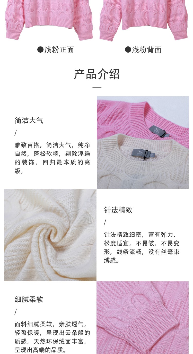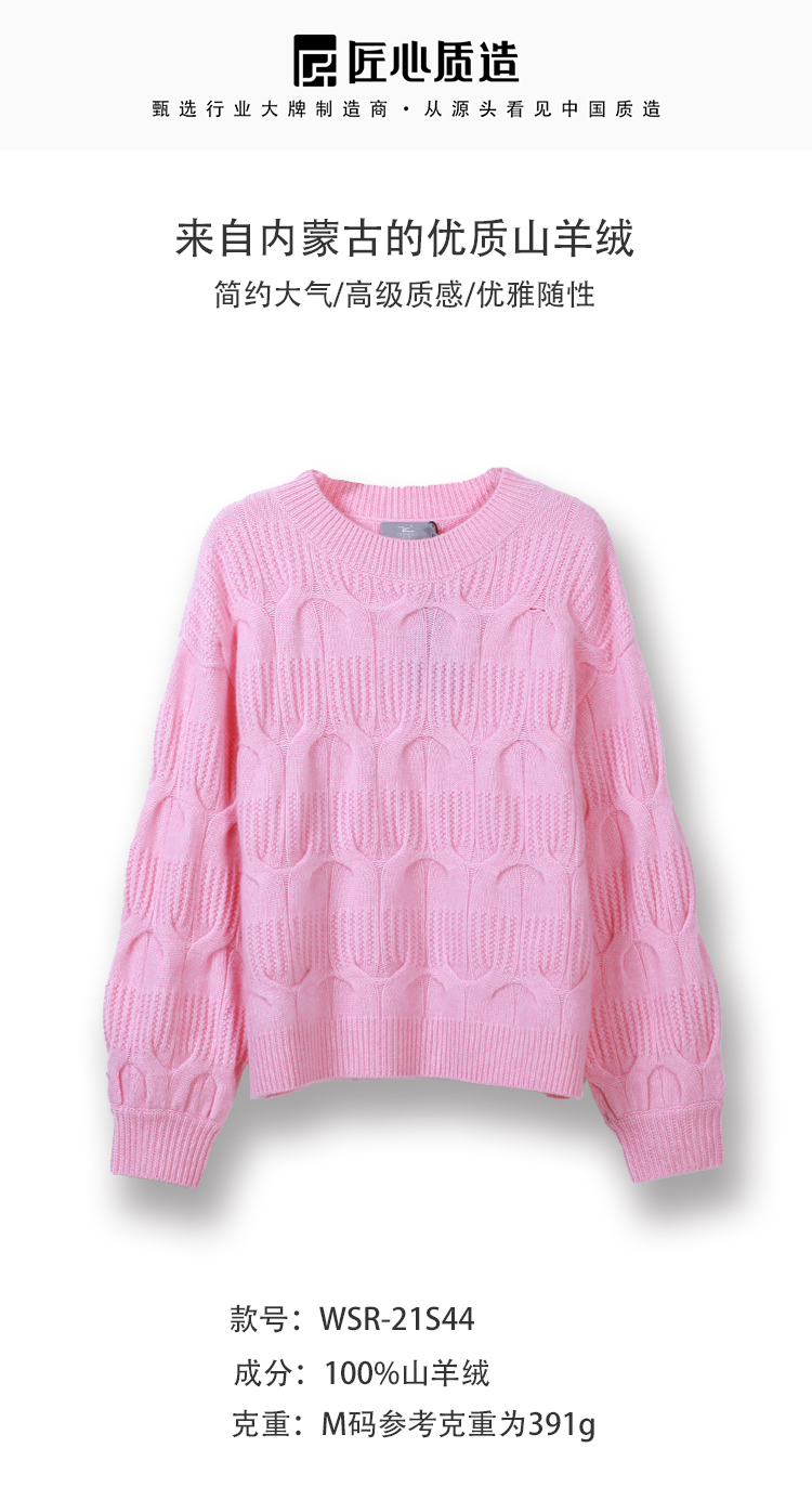 东黎 • 山羊绒 女士秋冬春季针织圆领重工绞花套头羊绒衫慵懒 WSR-21S44
