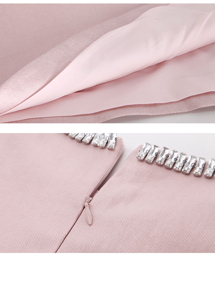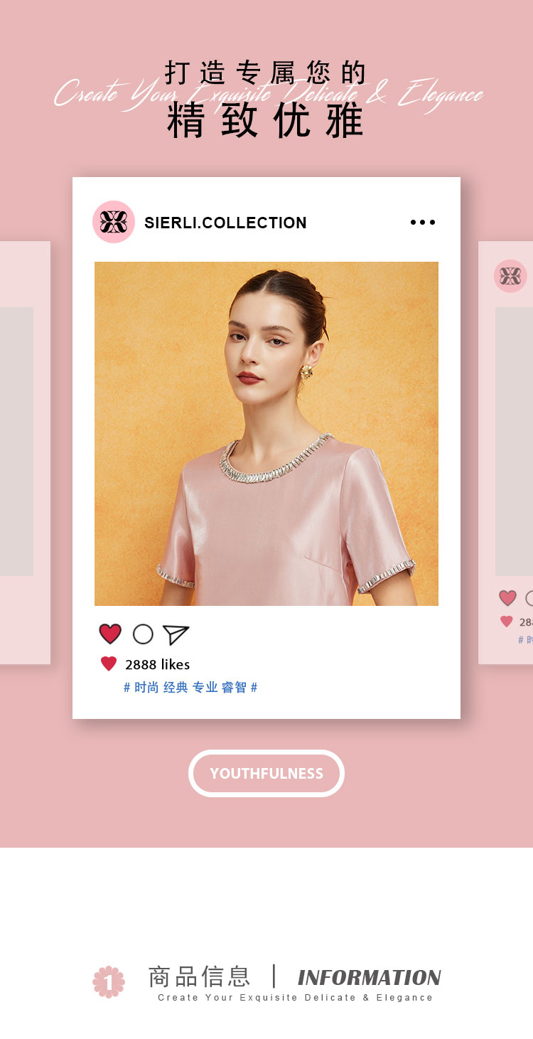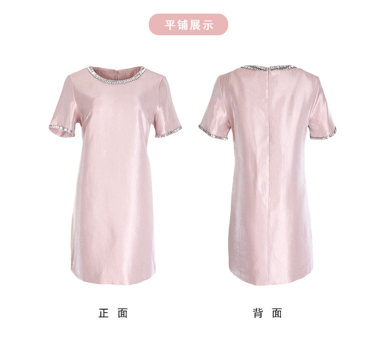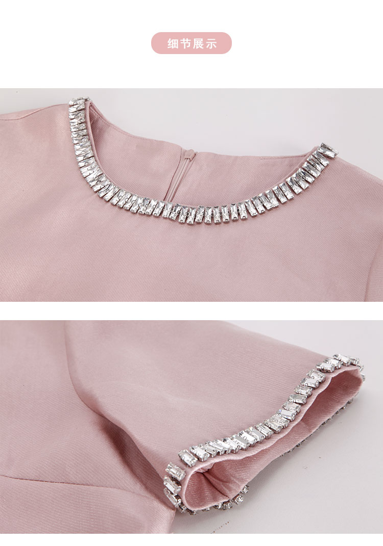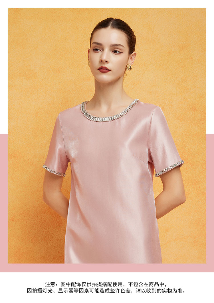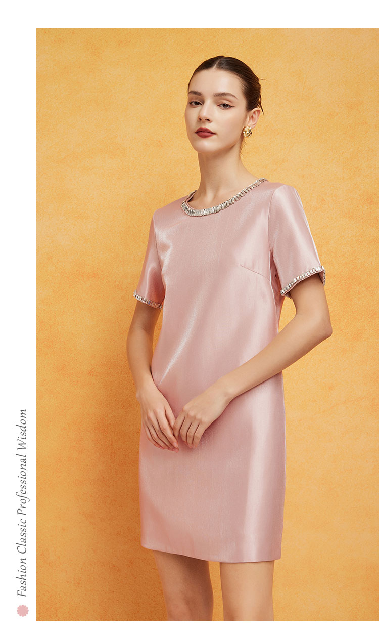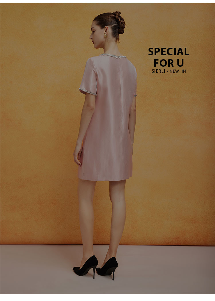 PF8B7斯尔丽2024新款清爽透气H型气质小香短袖撞色镶钻经典显瘦连衣裙