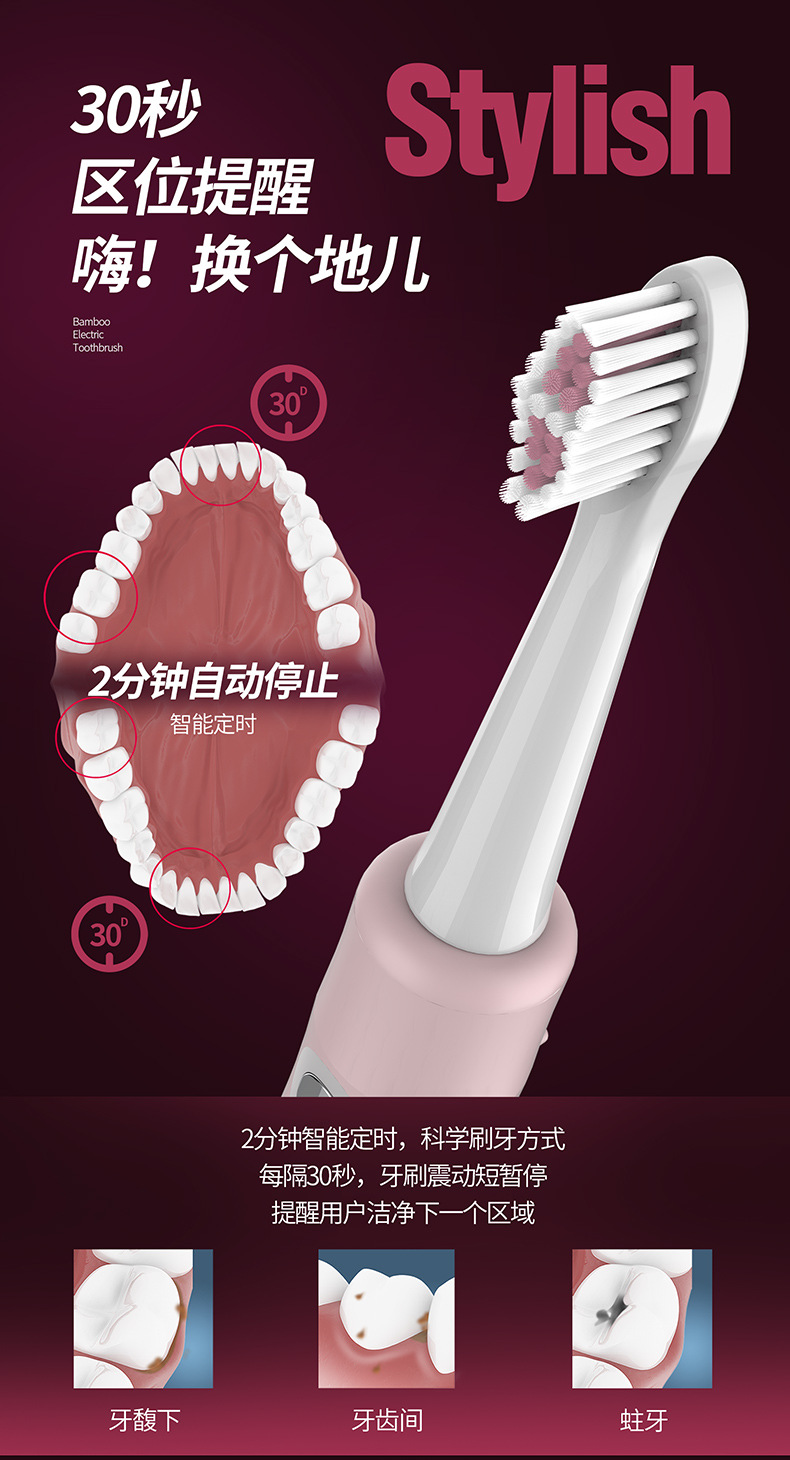 【两套超值装】铂瑞Z2成人款电动牙刷 声波情侣款 6档模式IPX7级整机防水2分钟智能计时30秒換区提醒