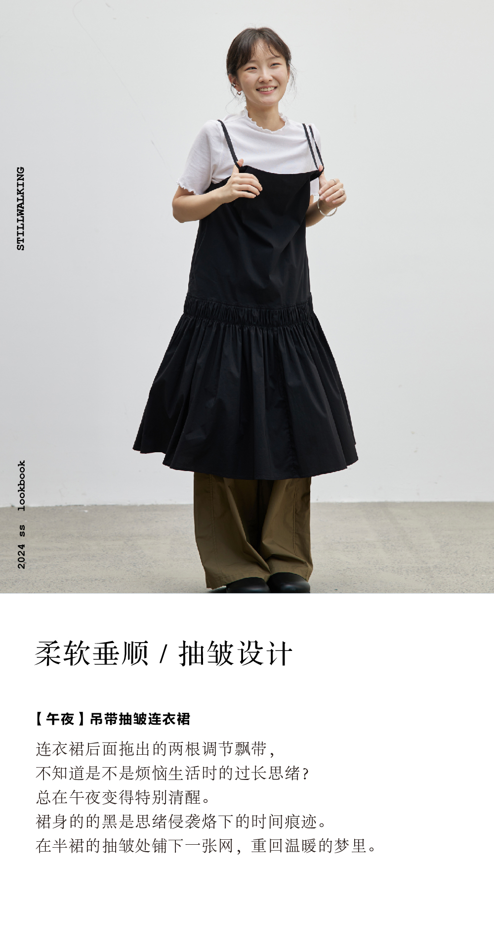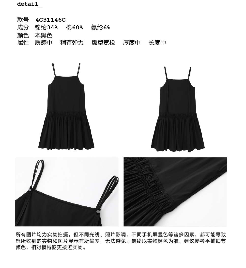 步履不停/4C31146C/吊带抽皱连衣裙