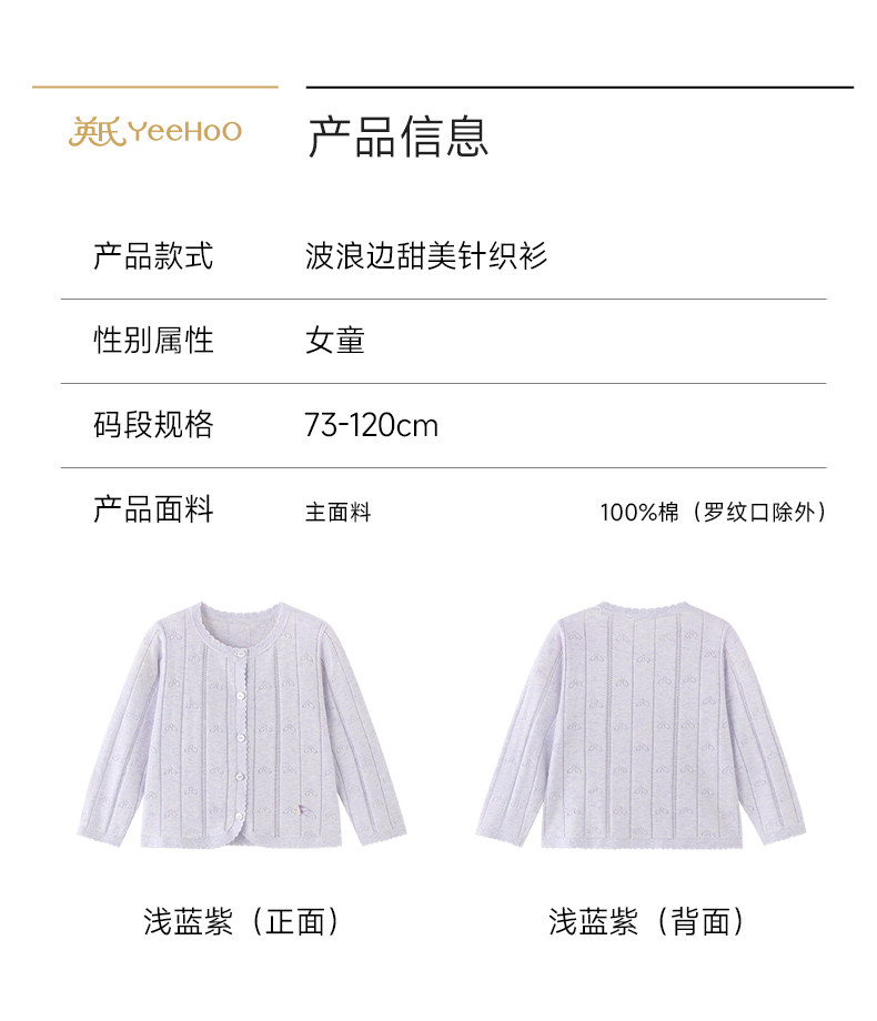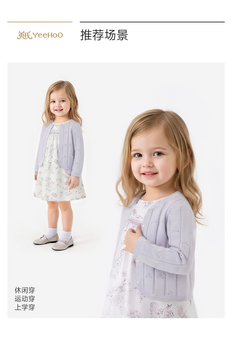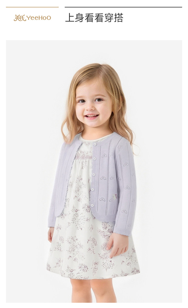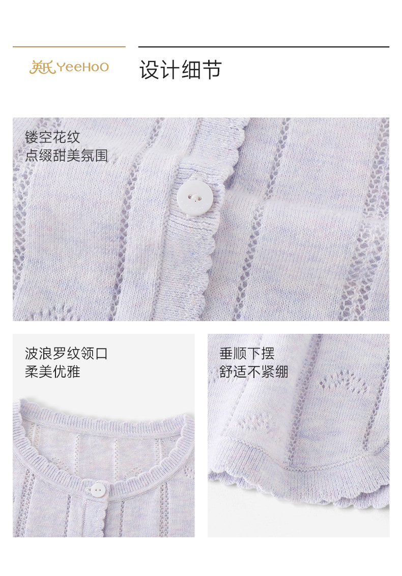 英氏儿童外套女童针织开衫纯棉夏季新款空调房薄外套YRWWJ2S011A
