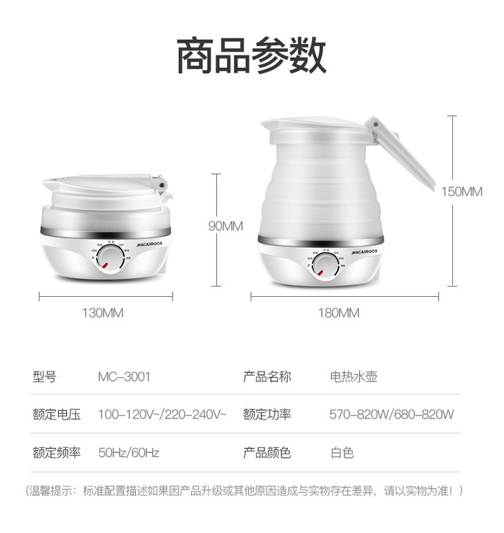 【迈卡罗】Macaiiroos/迈卡罗便携式折叠电热水壶小型迷你烧水壶MC-3001