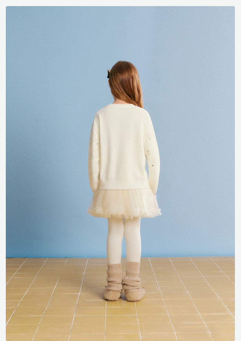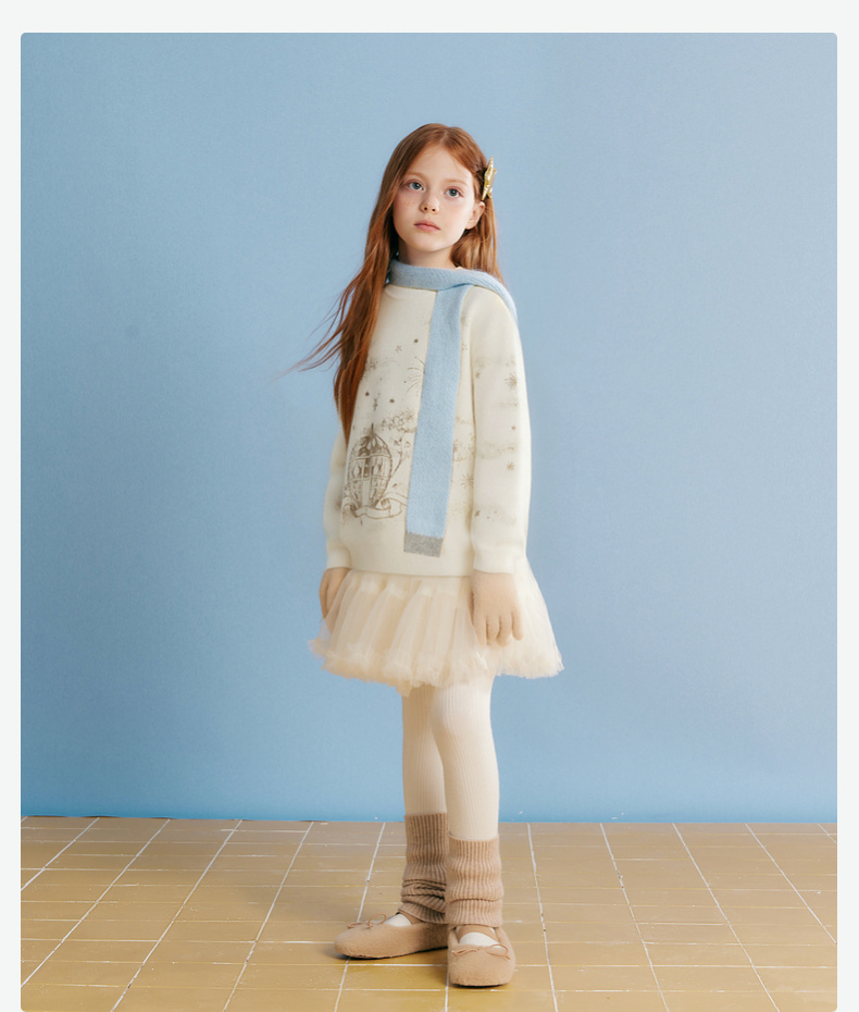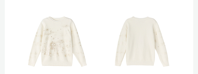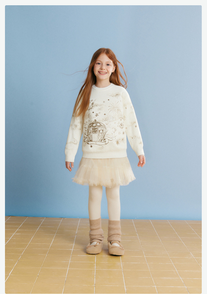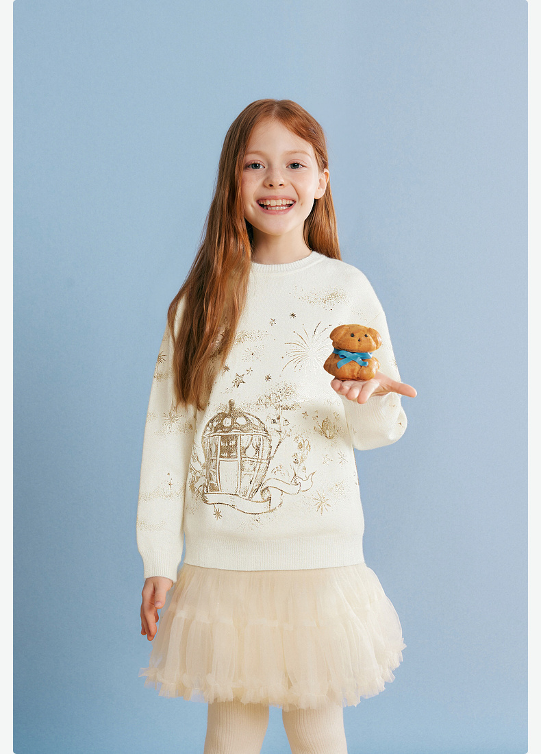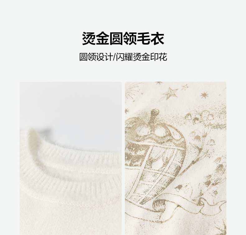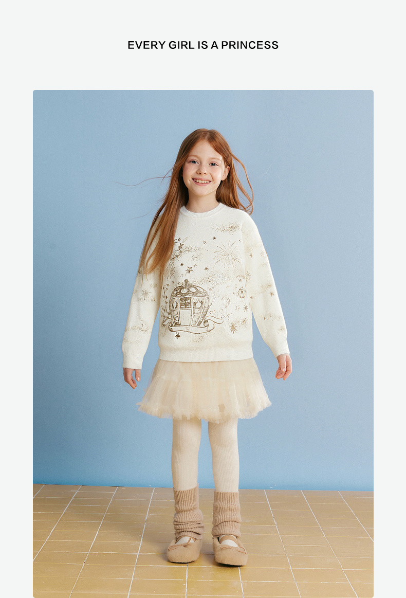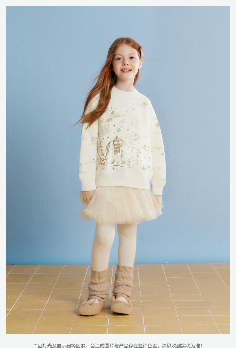 笛莎Deesha 童装女童毛衣2025冬新款烫金圆领毛衣